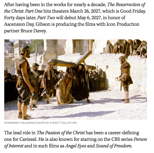 TNABO 詹姆斯·卡维泽退出,不会回归出演两部定于2027年上映的《耶稣复活记》,会由新演员替代