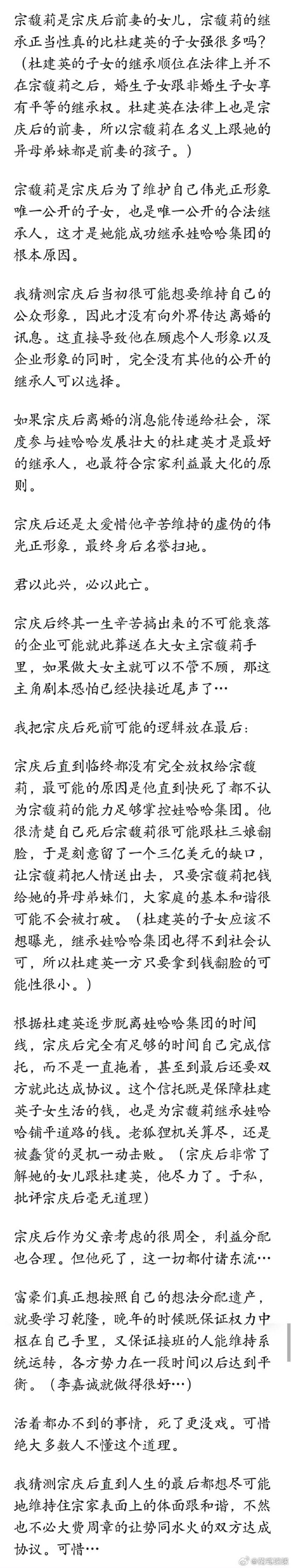 附图分析得宗庆后和宗馥莉应该是真实的。 宗馥莉彻底出局,意料之中。 宗馥莉之前说过:实力没到的时候先妥协。这是她的第二次辞职,上次是为了掌权,那这次呢? 她去年8月接棒父亲宗庆后,掌舵仅一年多。 经过这一年种种历程来看,宗馥莉的路子太野了,妄图把国有资产变为私人的,是最大最大的污点。 宗馥莉决定独立经营“娃小宗”,这步棋透着实实在在的无奈和风险。是一次高风险的战略突围。成功了,她或许能真正带领企业走出僵局;但如果失败,则可能面临巨大的市场压力。 还有一个问题是大家关注的:被宗家转移、掏空的巨额国有资产,能要回来吗?包括宗馥莉享有的,宗庆后小三享有的,宗庆后三个美籍子女享有的。 国资不是拿她没办法,是真的给死去的老宗留了面子。