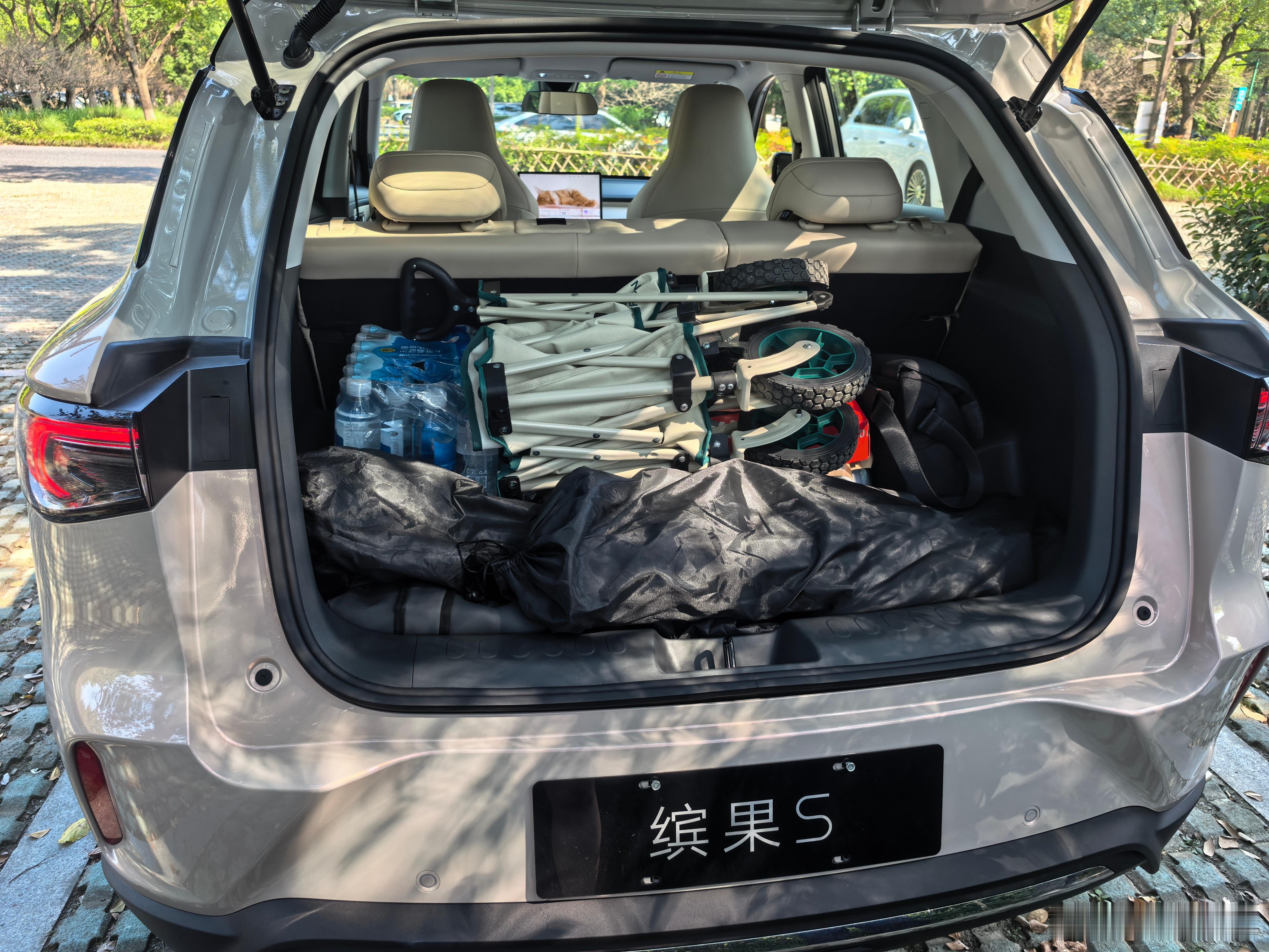 以前一个露营车的东西需要一个台大SUV ,现在缤果s 都能全部装下,还装不满[无聊]