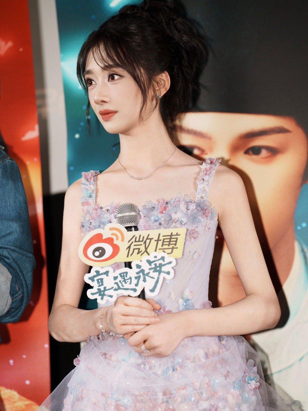 这居然是王影璐 米白色公主裙把她的气质衬托得温柔又纯净,浅粉色背景让画面更显甜美。她嘴角微微上扬,眼神里满是笑意,让人忍不住多看几眼。