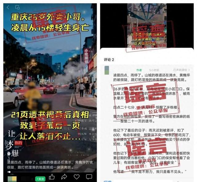 近日,有网民在互联网平台发布信息称“九龙坡黄桷坪一外卖员轻生身亡”,引发关注。经核实,网传信息系谣言。