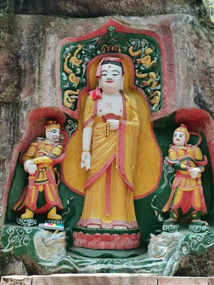 据统计,四川现存石窟寺及摩崖造像2134处,但四川省文物局调查显示,这些珍贵的石刻文物有部分存在人为破坏、尤其是妆彩重塑的现象。