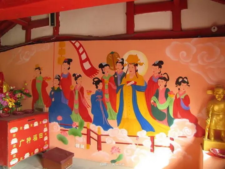 庄严、祥和的造像壁画,被重绘后变成了“多巴胺配色儿童乐园”。