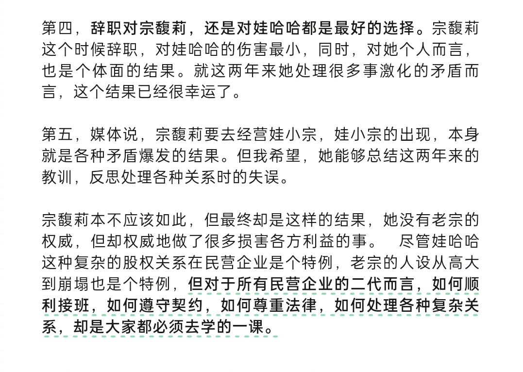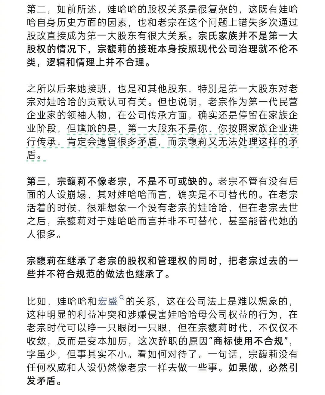 道释儒法兵墨纵横 9 2025-10-11 17:05 本质上,当年的很多民营企业患得患失,戴着国有的一半帽子有好处,坏处就是最后产权不清,高手厘清了产权,老宗没有厘清,小宗年轻,力有未逮,故出户单干,结果还算可以 道释儒法兵墨纵横 回复 10-11 18:09 娃哈哈的产品外观不如农夫山泉,娃小宗要吸取所有著名国内外饮料产品所长,设计出更好的外观来,增加国人的审美能力,农夫山泉就做的很好,那些以前争议的外型和图片,老丁觉得与众不同、很新颖,有历史意义、有建筑意义、有美术意义