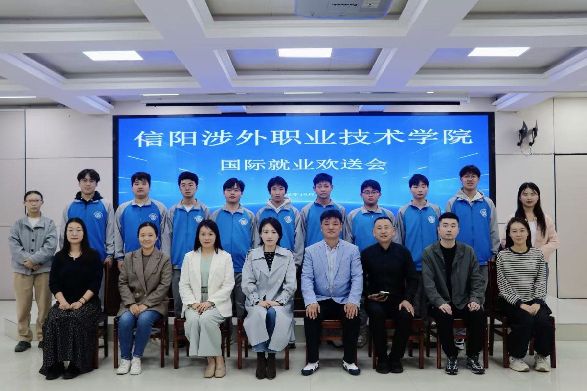 金秋十月,硕果盈枝。2025年10月11日下午4时,信阳涉外职业技术学院在1号楼6楼会议室隆重举行赴日就业实习生欢送会,为即将远赴日本开启职业实习征程的13名学子送行。学院院长陈思、副院长胡爱萍,河南吉星对外劳务合作有限公司副总经理王军,安徽奥亚教育集团刘志银先生,学院国际就业中心主任黄桃出席会议,13名赴日学员、全体在训学员及相关教师共同参会,会议由胡爱萍副院长主持。