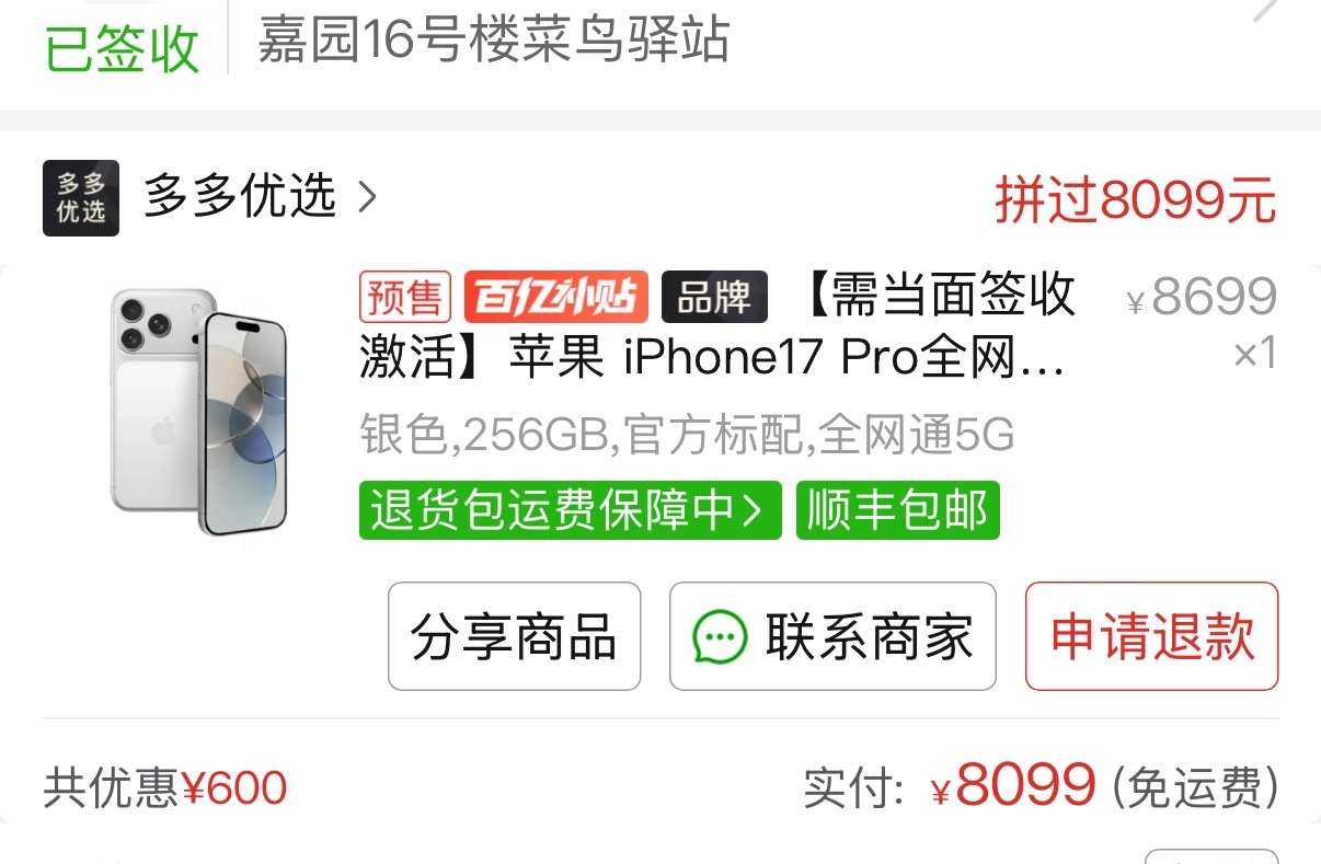 这十年我在上面买过的生活用品能绕我家三圈,但最牛的还是去年开始买百亿补贴,蹲到的手机比官网便宜小一千,今年iPhone 17 Pro首发我直接冲了!比官网便宜900元!谁都逃不过拼多多真香定律是真的。不过咱也是有经验的:专挑10万+销量的老店,下单前先跟客服掰扯清楚"必须原封!拆封有问题我可退",到货第一时间录开箱视频,封膜平不平整、有没有灰都得瞅仔细,确认没问题才敢激活,稳稳安全下车~