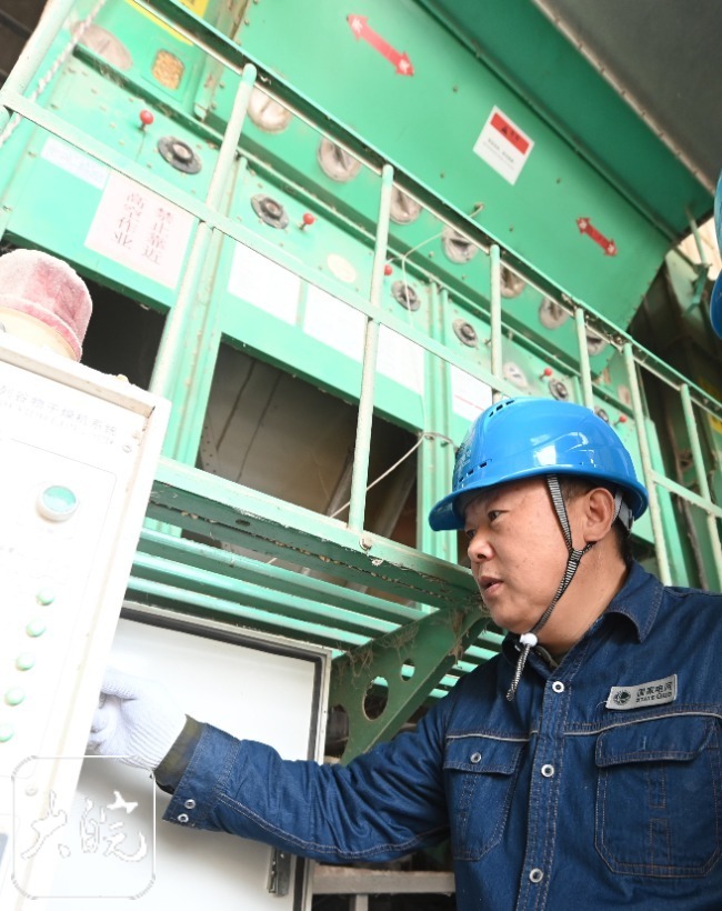 在亳州市谯城区大杨镇聂红伟种植专业合作社(粮食烘干点),当地供电所技术人员正在巡查粮食烘干机的工作状态。