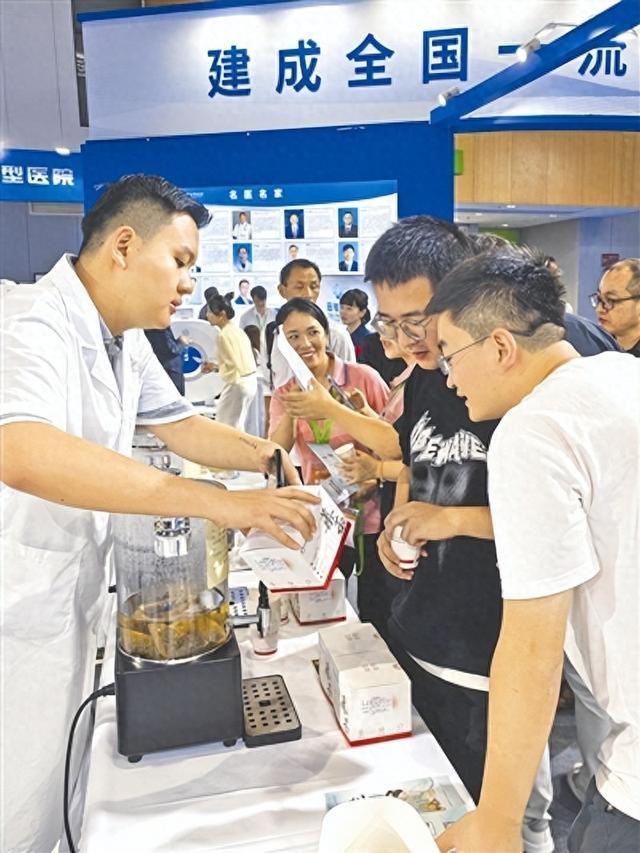上午9时,西部健博会一开幕,各大医院和企业的展区便迅速汇聚起一波波体验与观摩的人潮。四川省人民医院展示的中药茶饮大受欢迎,整个上午人头攒动,人们纷纷驻足品尝。“省医院的茶太火了,我之前就在互联网医院上买过。”市民李女士表示。