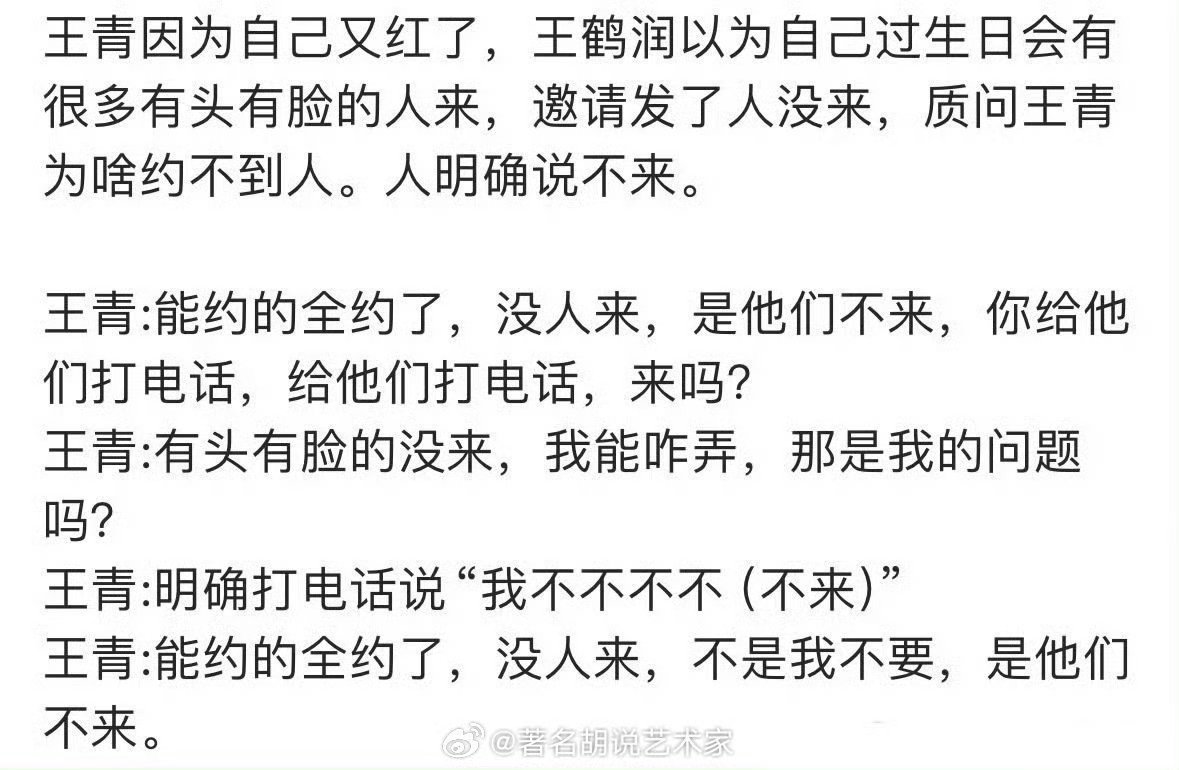 王鹤润工作室辟谣称,狗仔爆料的王青王鹤润吵架原因 为假。这不否认的话是不是觉得太