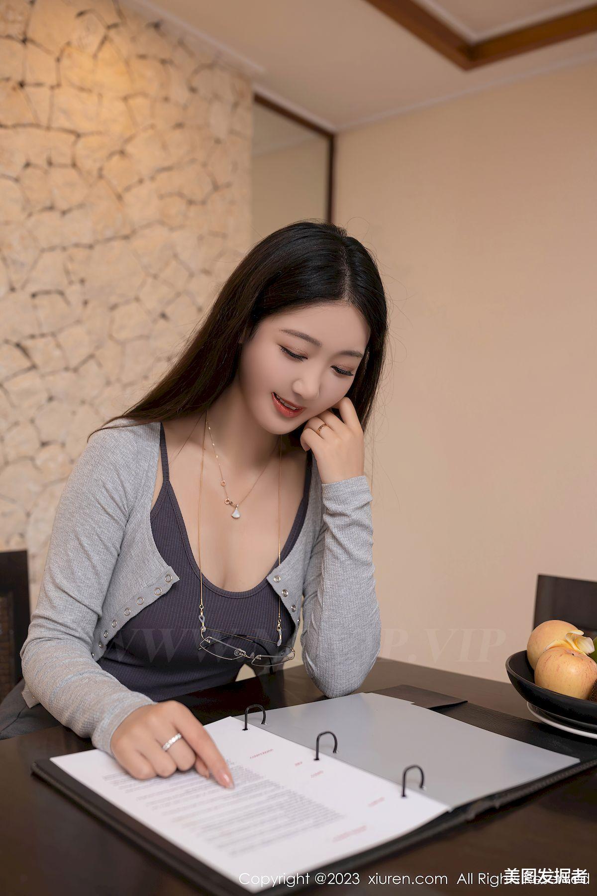 模特唐安琪浅灰色上衣搭配灰色短裙巴厘岛旅拍