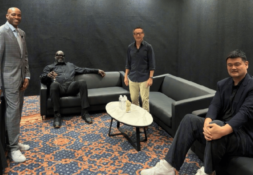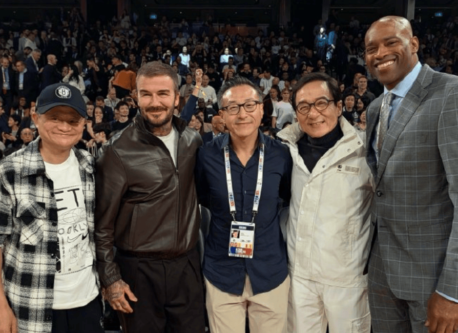篮网晒球队老板蔡崇信与众名人的合照并配文:传奇们!