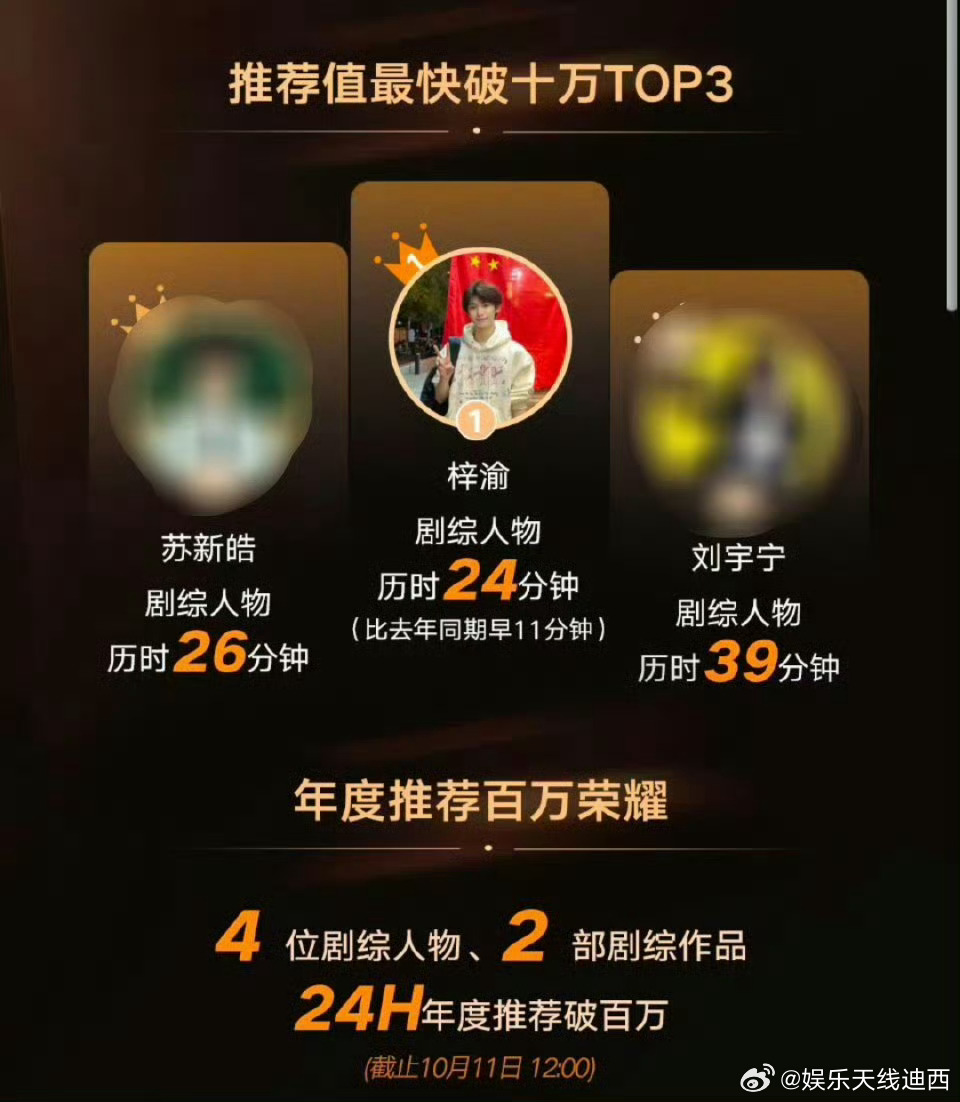 梓渝和yuni好棒,人物赛道第一,推荐值24分钟破10w,目前349万推荐值!
