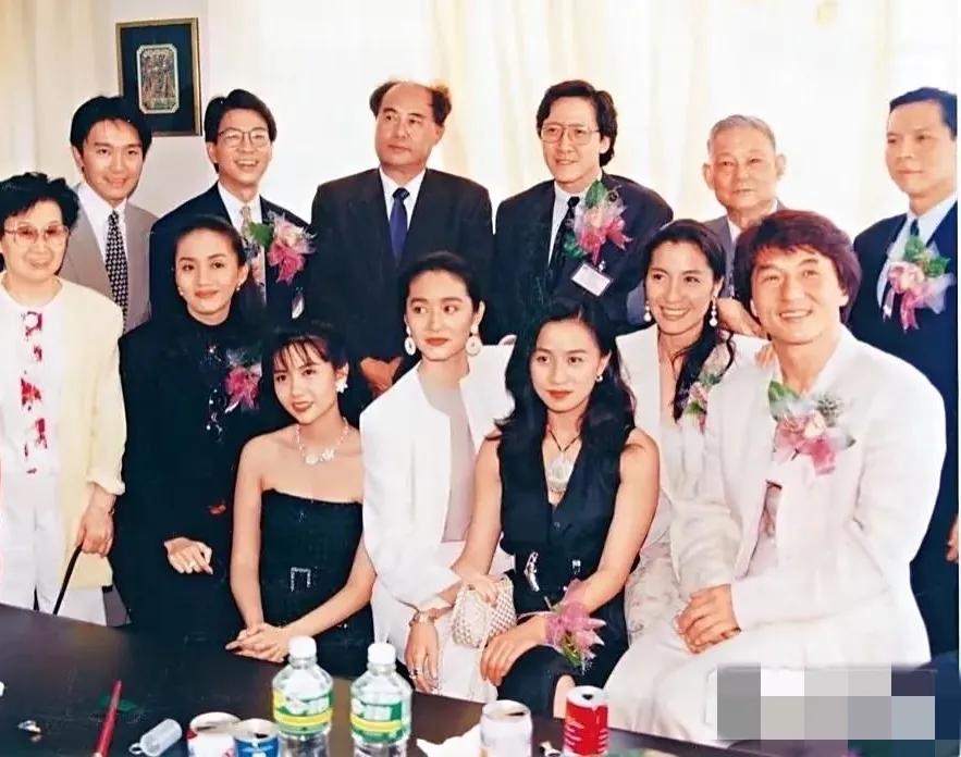 我敢打赌,百分之99%的人认不全这张老照片中的明星! 我只认出了秀发垂肩的刘嘉玲,俊目流眄的林青霞,喜容绽放的杨紫琼,瑰姿艳逸的梅艳芳,香肩裸露的朱茵及西装革履的周星驰与向华强,当然还有一身白衣的成龙,你还能认出哪位?