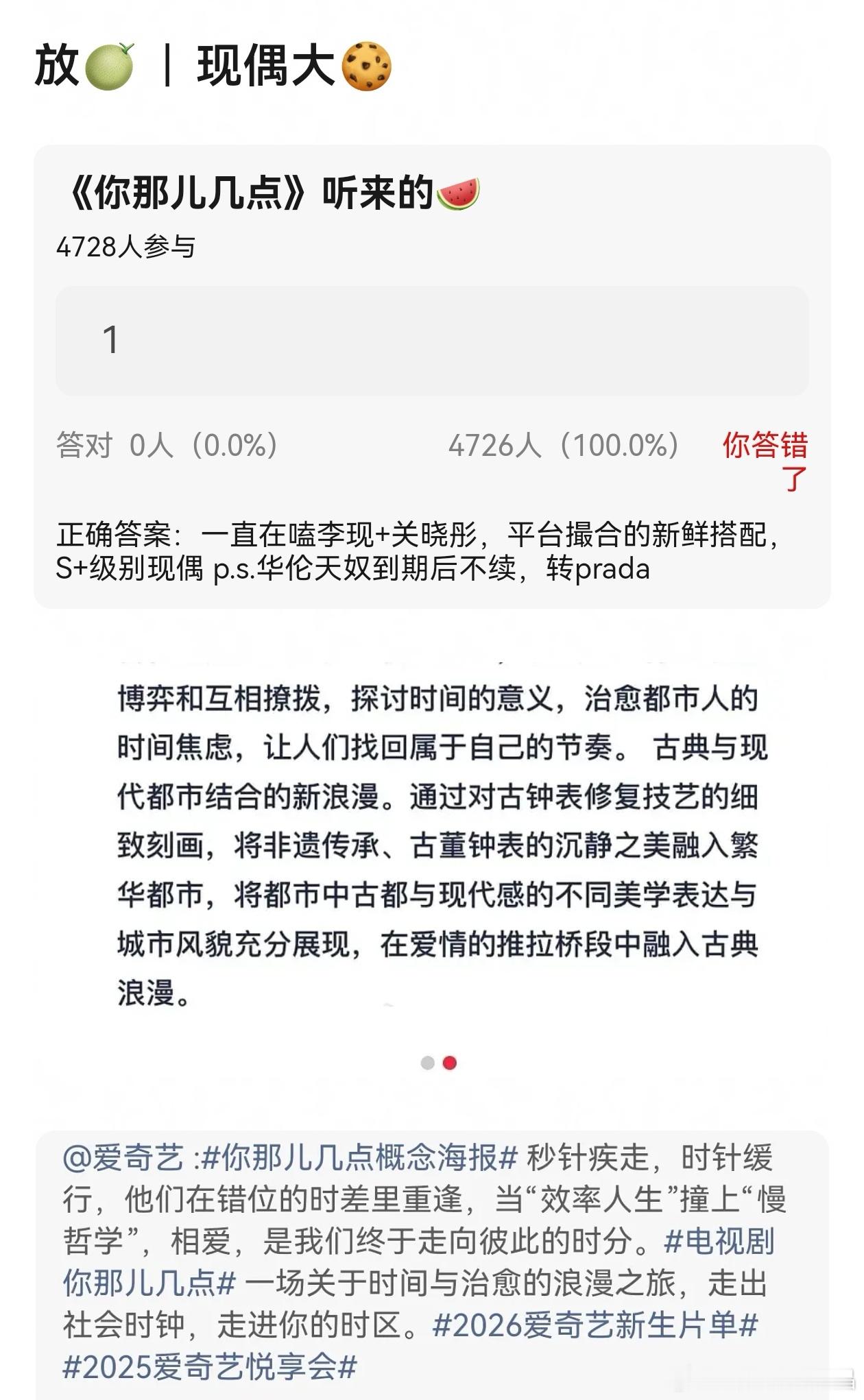 瓜[吃瓜]平台撮合李现和关晓彤合作S+现偶《你那儿几点》。