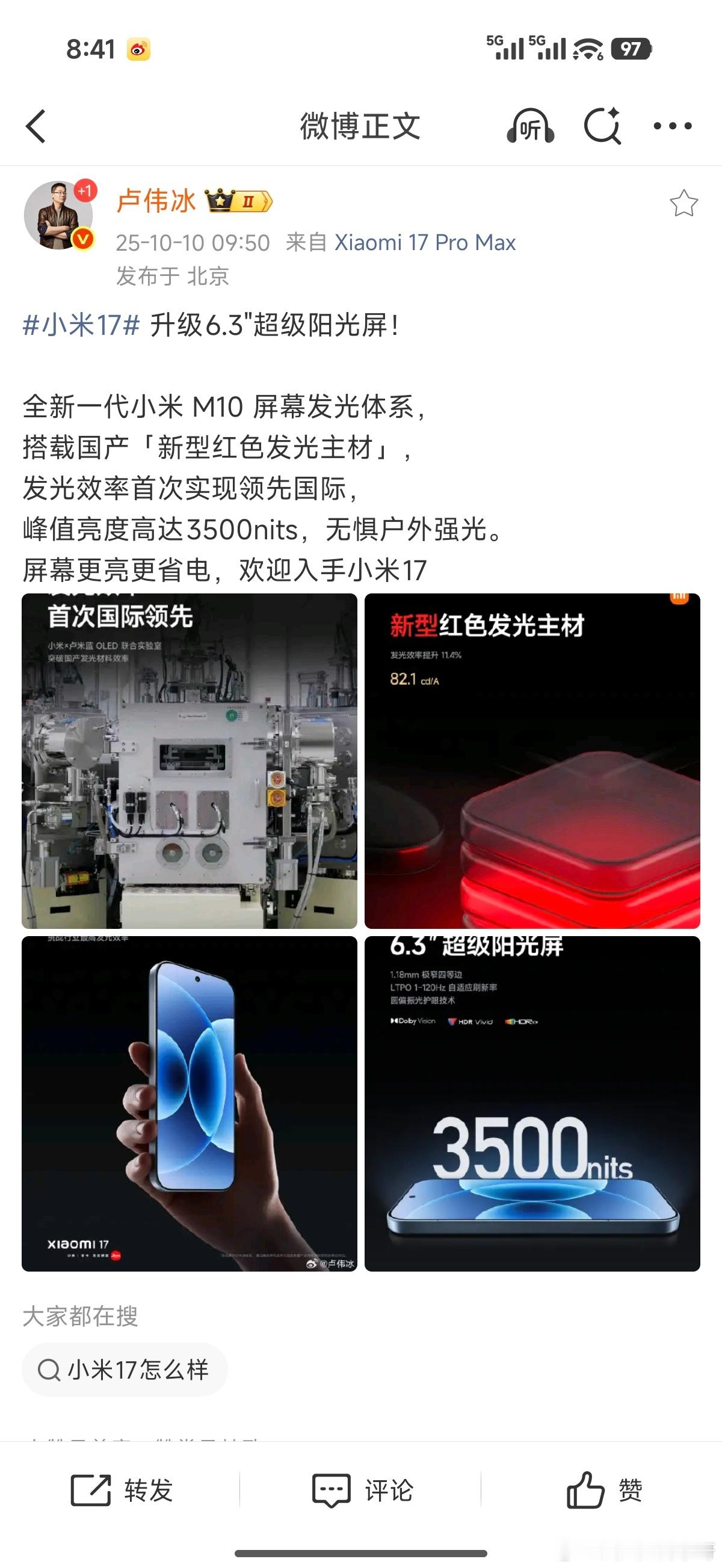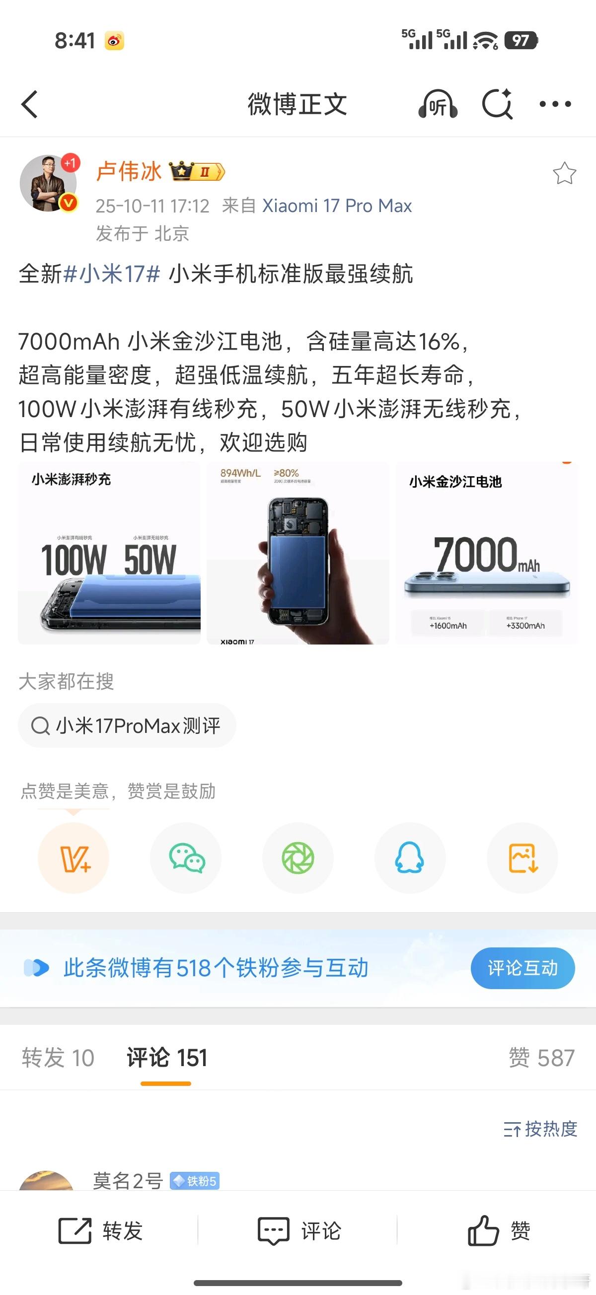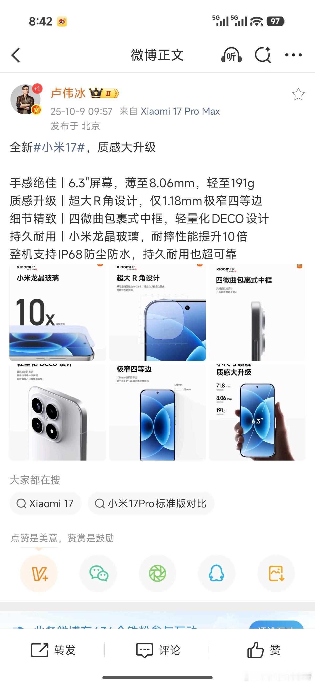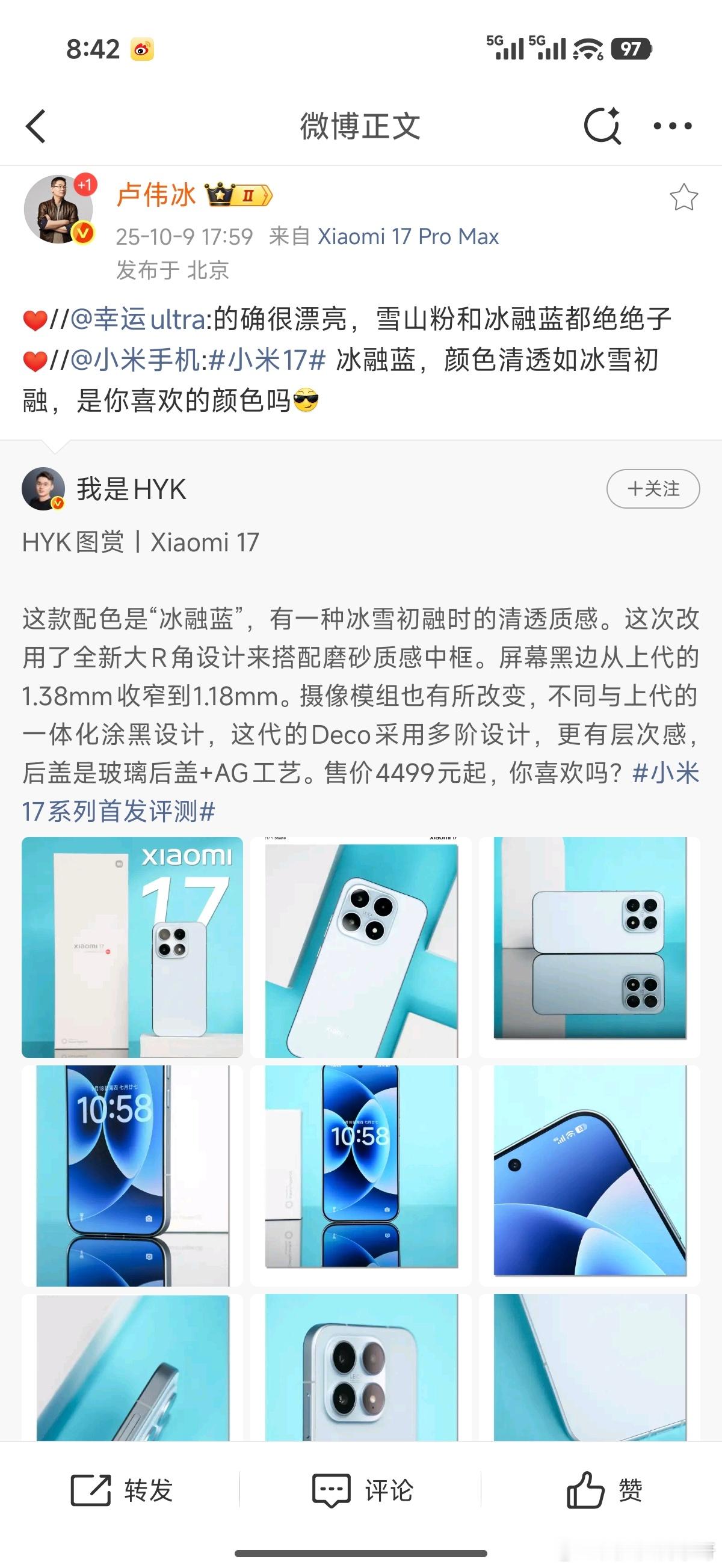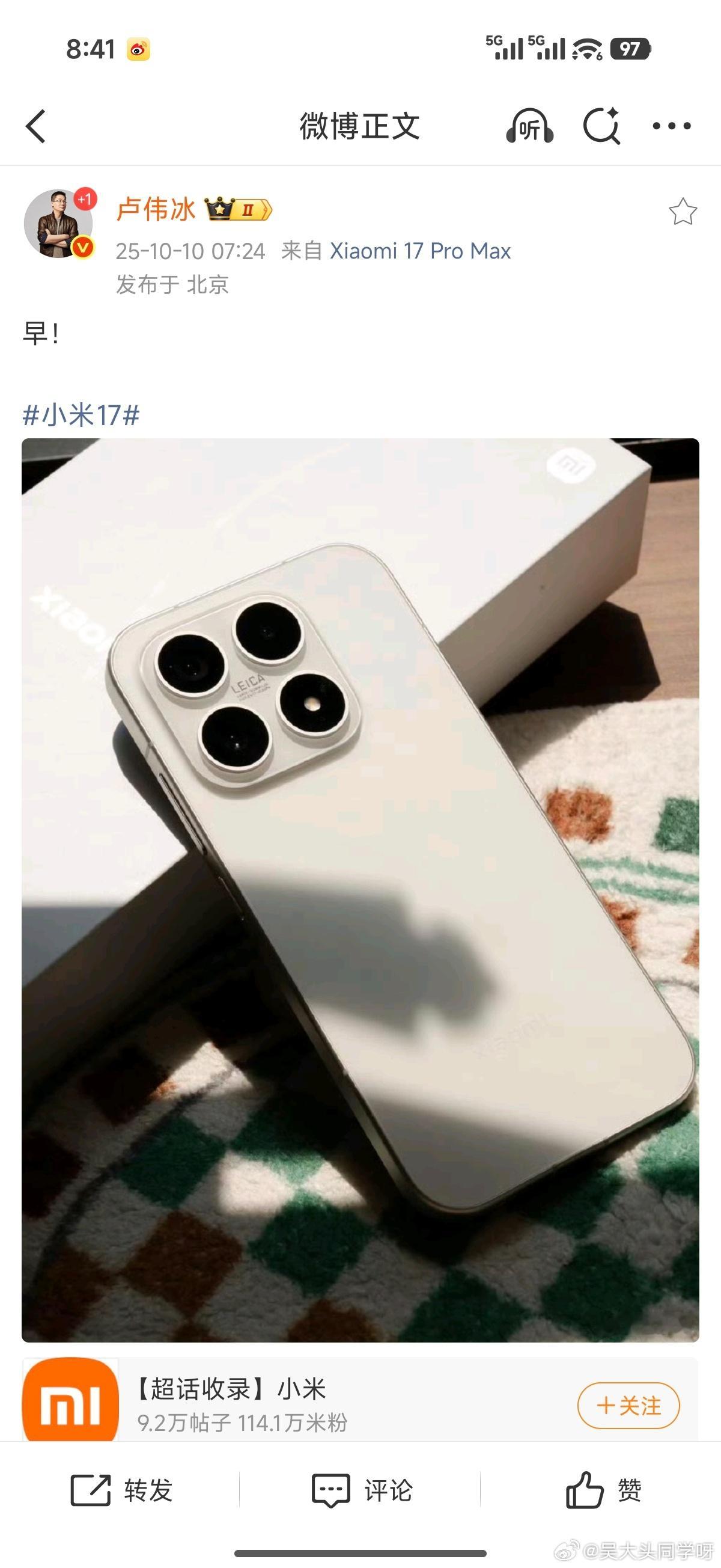 卢总这几天一直都在发博推荐小米17标准版呀~[笑而不语][笑而不语][笑而不语]
