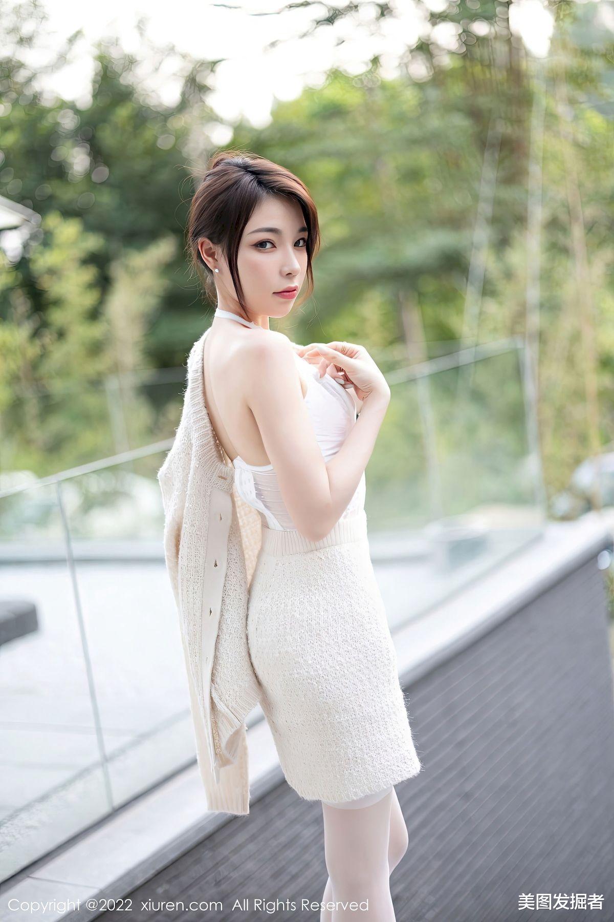 徐莉芝Booty米色上衣搭配白色丝袜户外写真