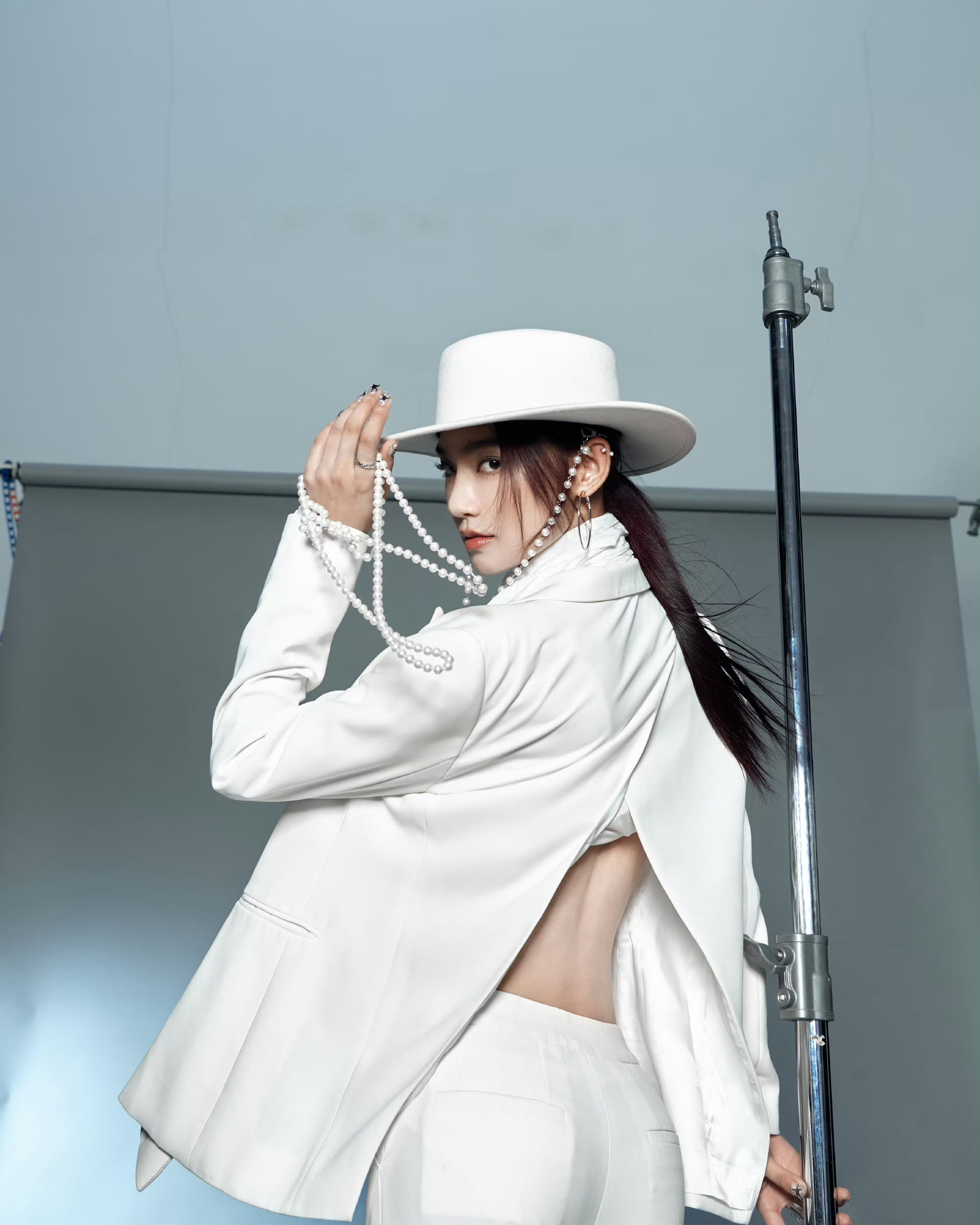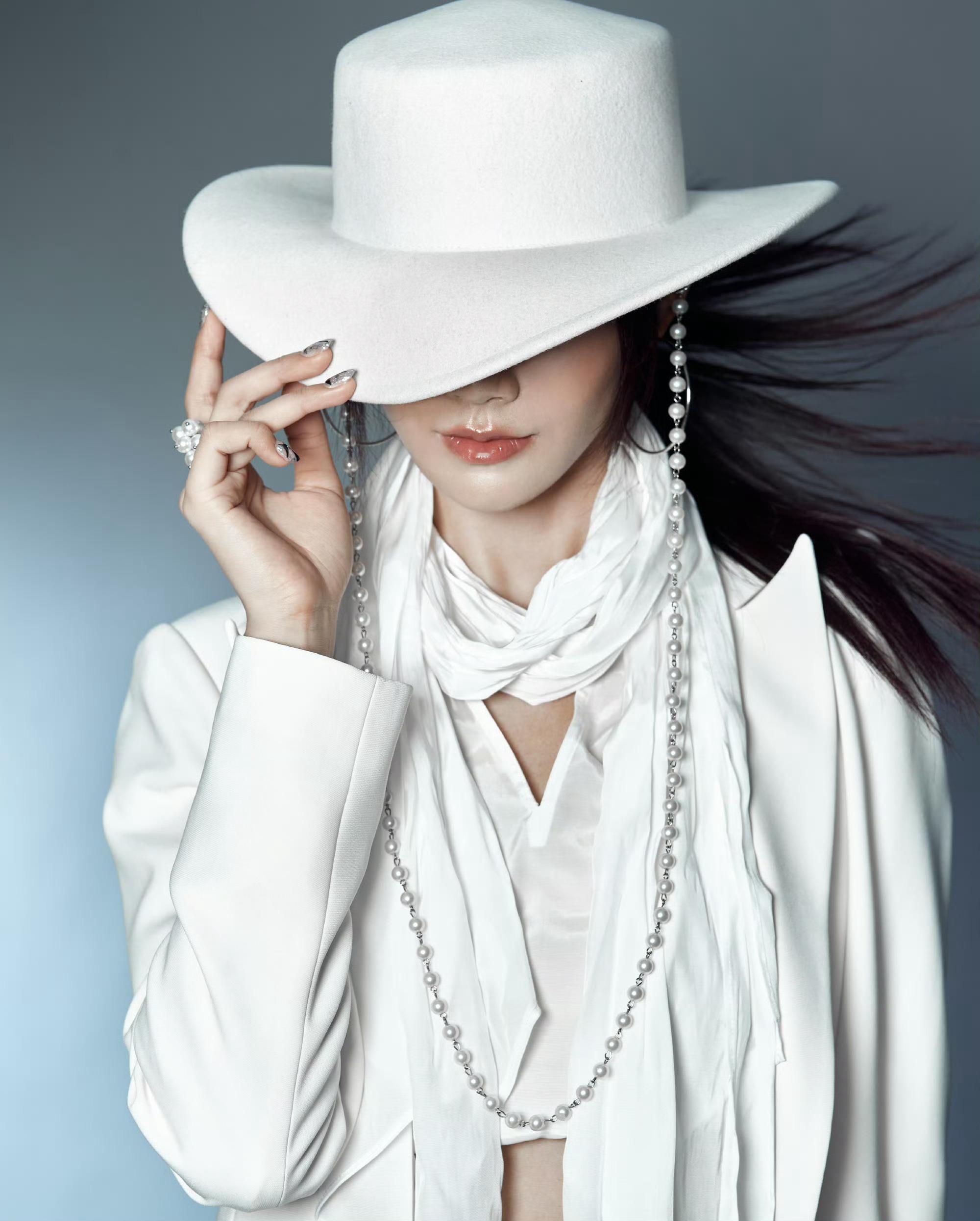 曾可妮白色礼帽造型 曾可妮这组造型把清冷氛围感拉满~