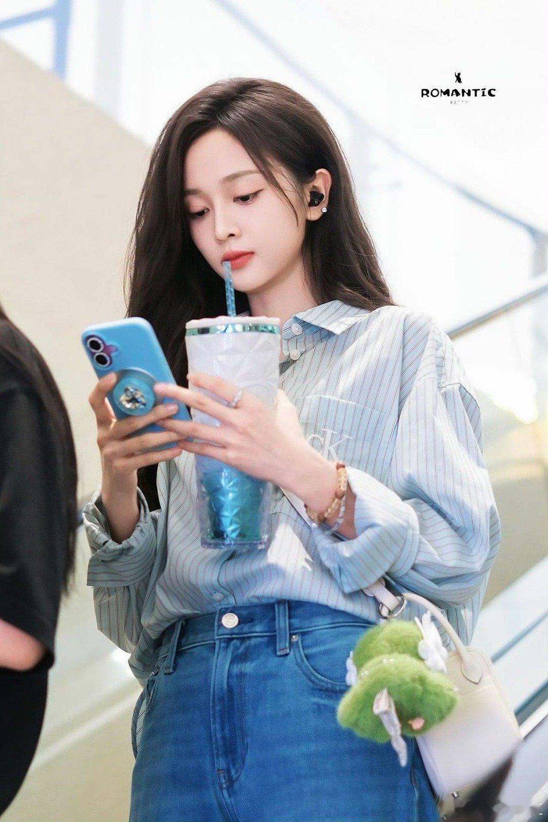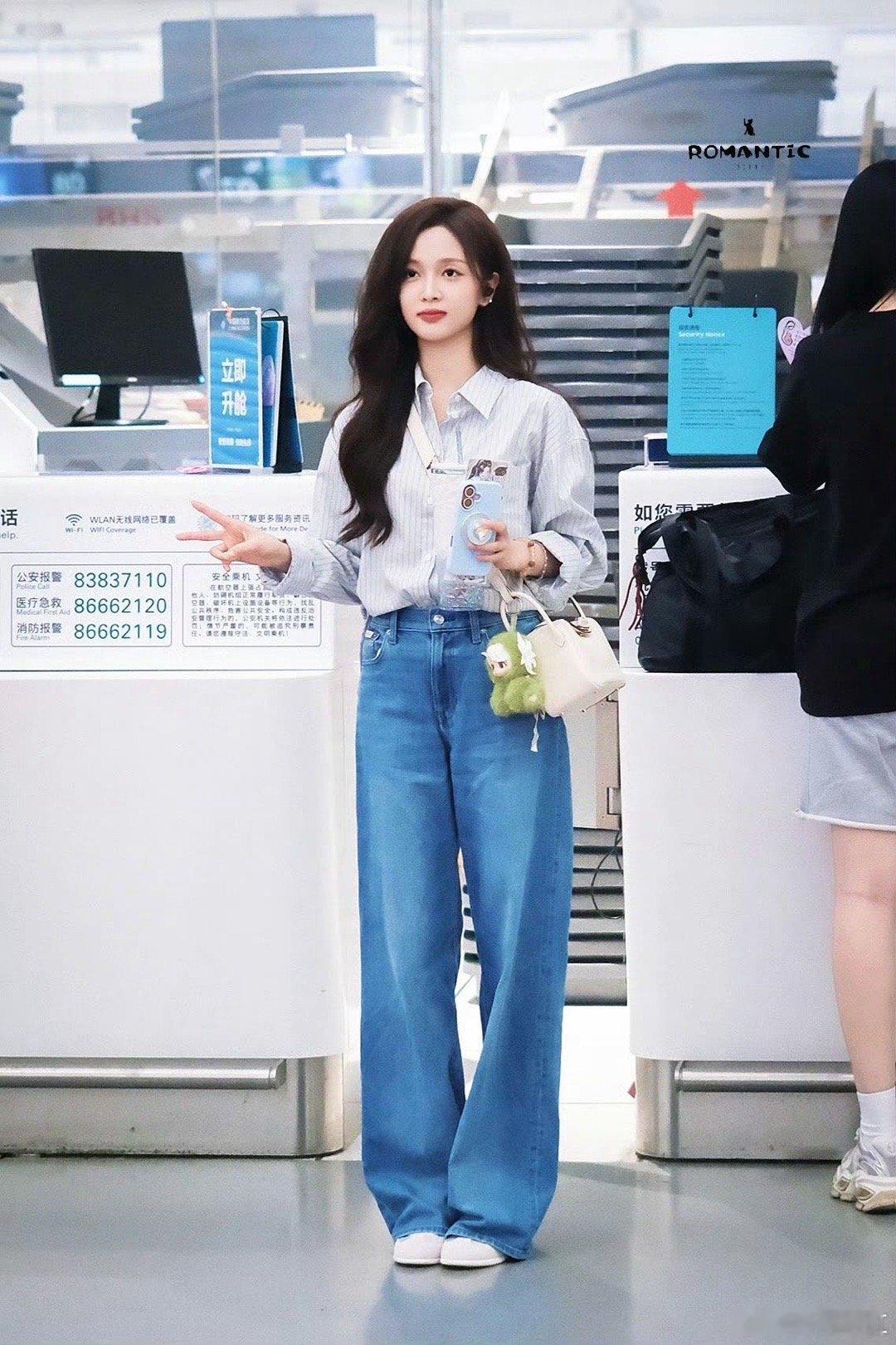 原来吴宣仪新宠叫vivistar 穿搭细节直接拉满!吴宣仪的条纹衬衫与vivistar颜色呼应,机场抱娃赶路的场景里,简约造型因玩偶增添亮点,少女感爆棚。