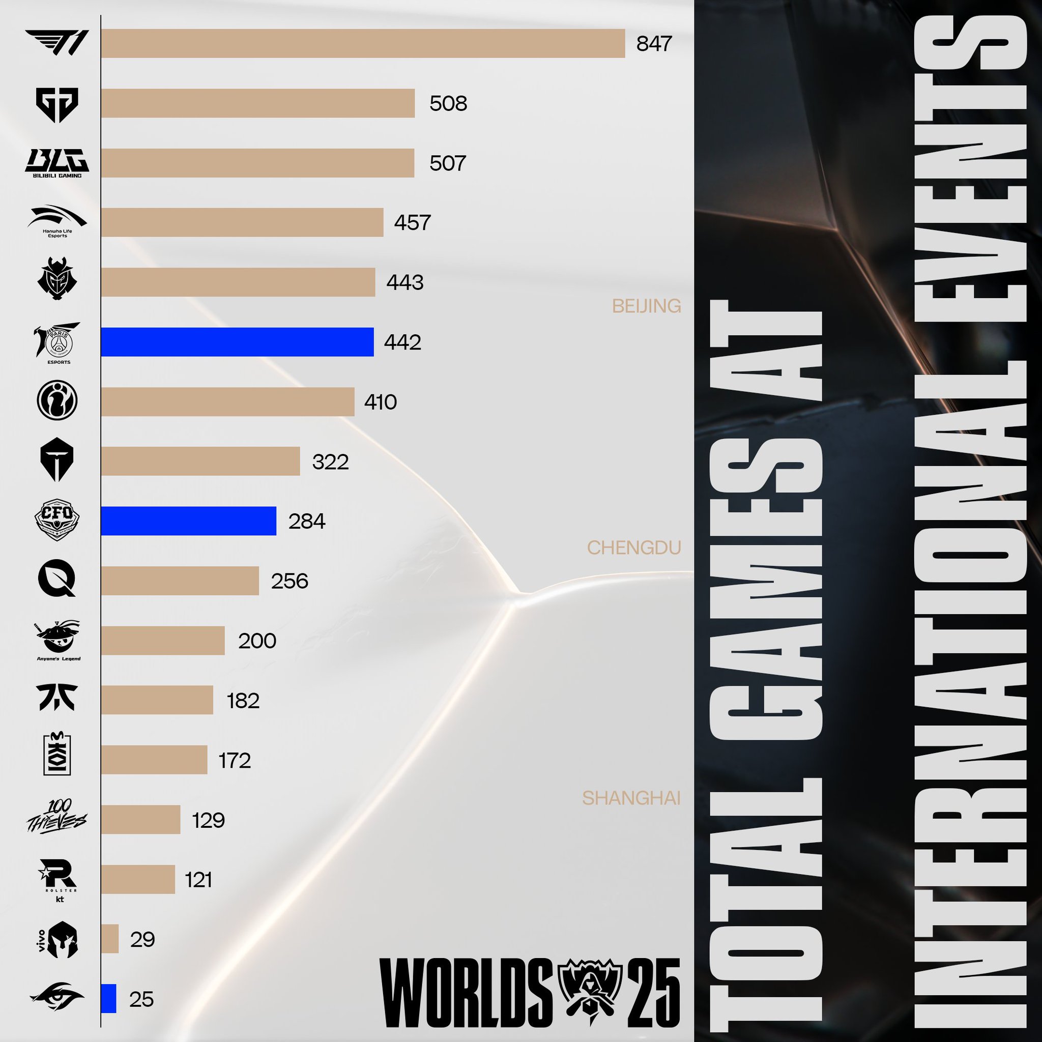LCP发布各战队选手参加国际赛事场次:T1/GEN/BLG位列前三