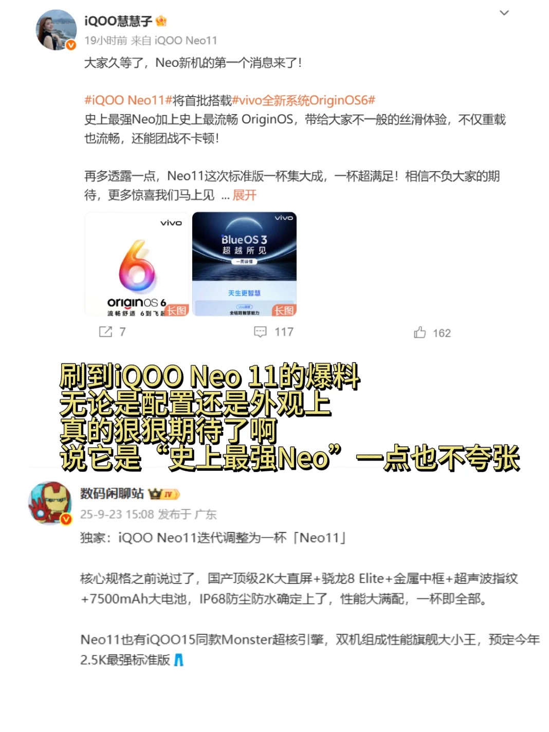 刚刚刷到iQOO Neo11新机外观配置爆料