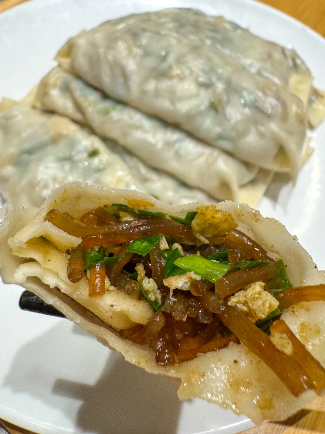 →可以理解成大号蒸饺,韭菜粉条鸡蛋馅儿,郑州再大一号的叫菜蟒,安阳这边的小一点所以叫菜条。