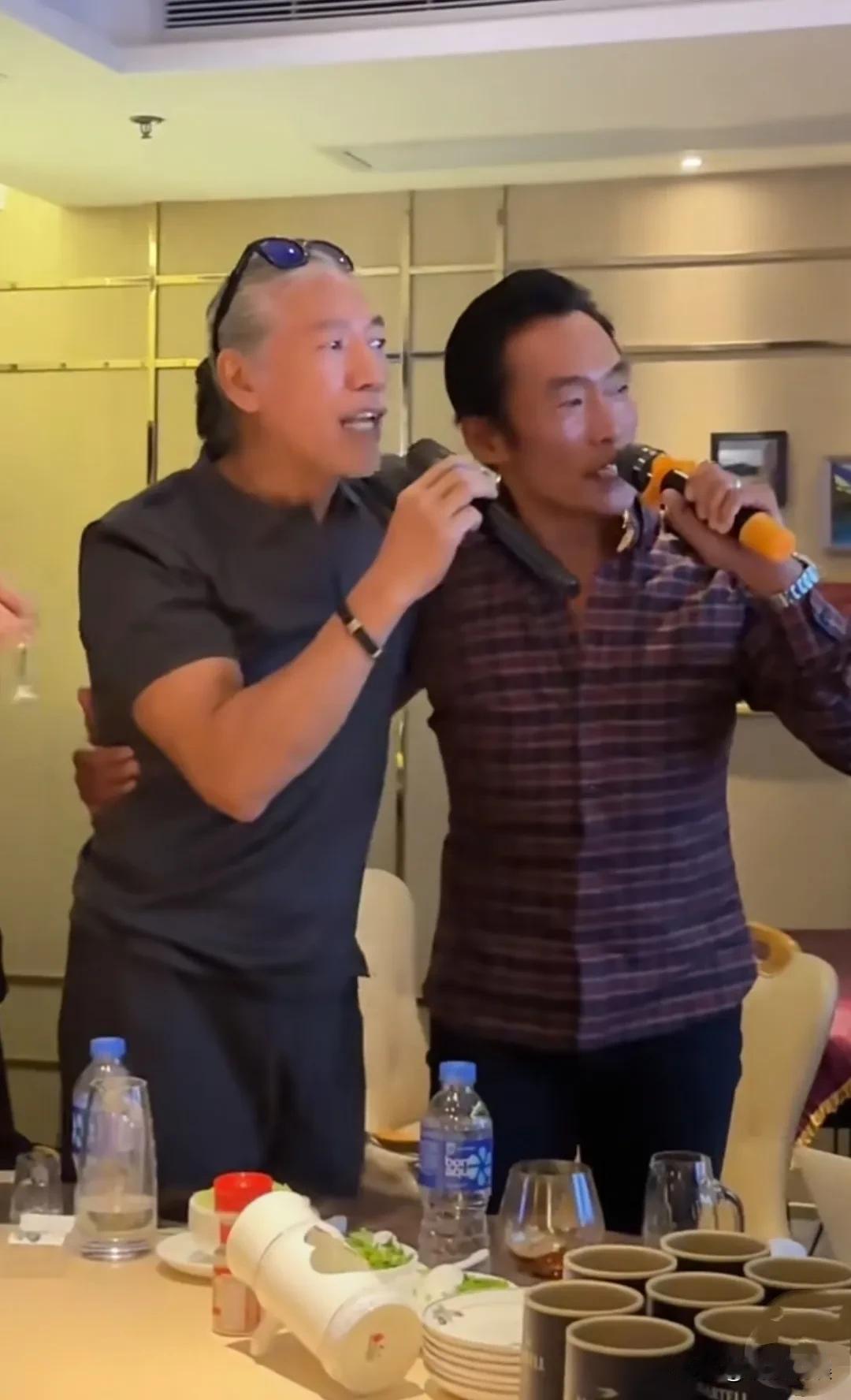 “乌鸦哥”和“浩南哥”假期相聚,俩人再唱《友情岁月》,感慨万千。 《古惑仔》两大反派扮演者张耀扬和郑浩南与好友相聚。张耀扬62岁,头发花白,还扎着小辫,头上架着墨镜,胳膊上的腱子肉紧致结实,胸肌发达。 61岁的郑浩南头发浓密,小眉小眼,眼神坚毅,身材结实。 相差一岁的兄弟俩都不年轻了,但是看起来余威仍在,还很有大佬气质!