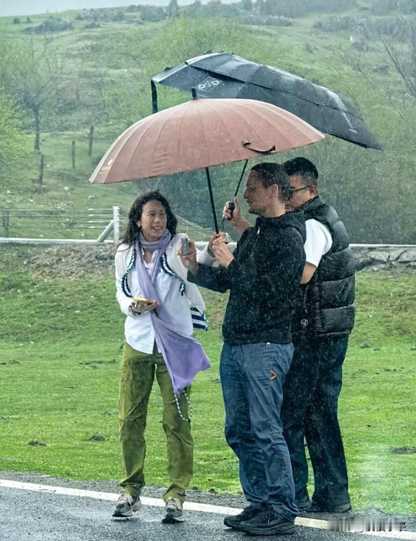 55岁莫文蔚和德国籍老公在甘肃旅游,夫妻俩穿衣打扮低调,两个人身材都很高挑,外形