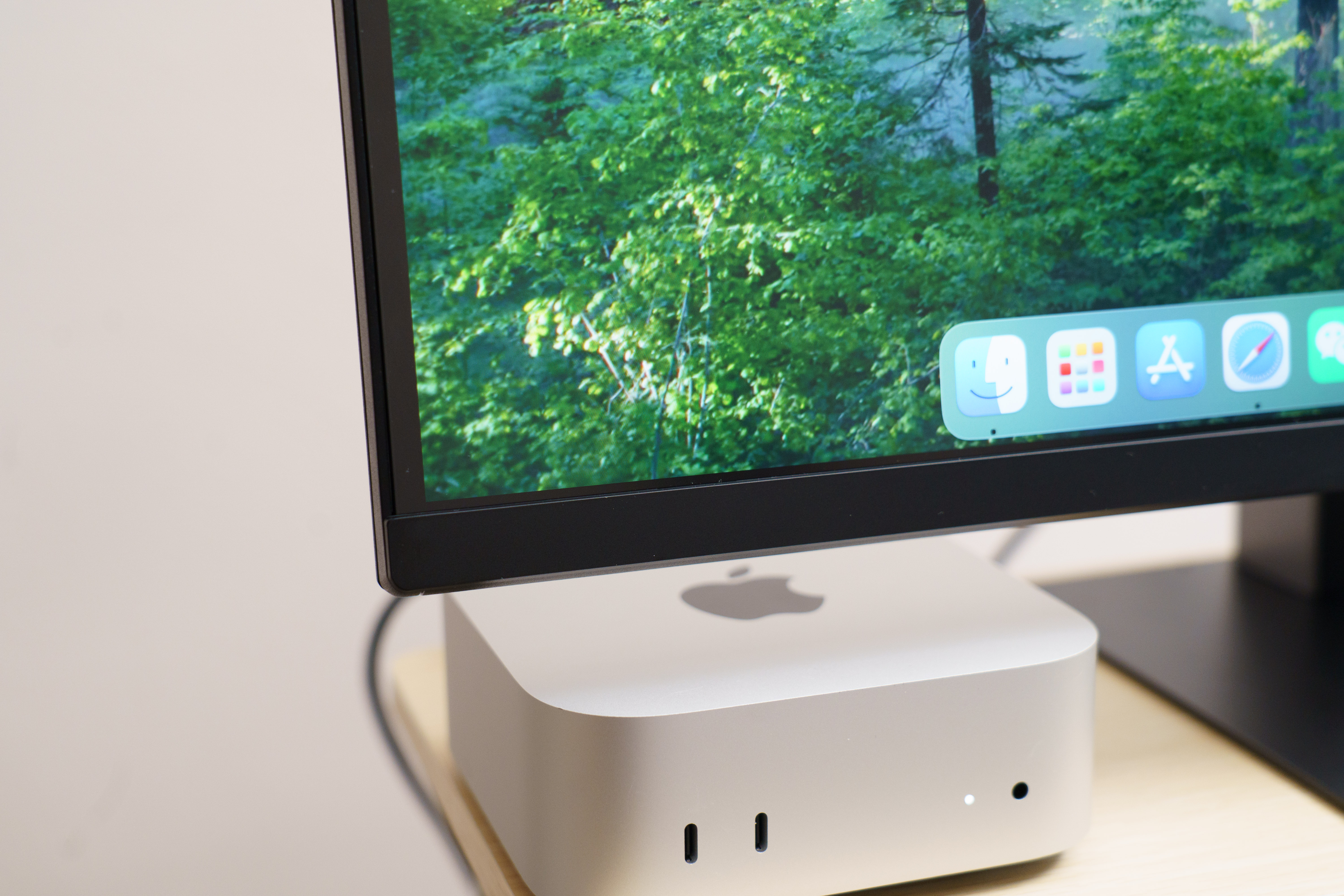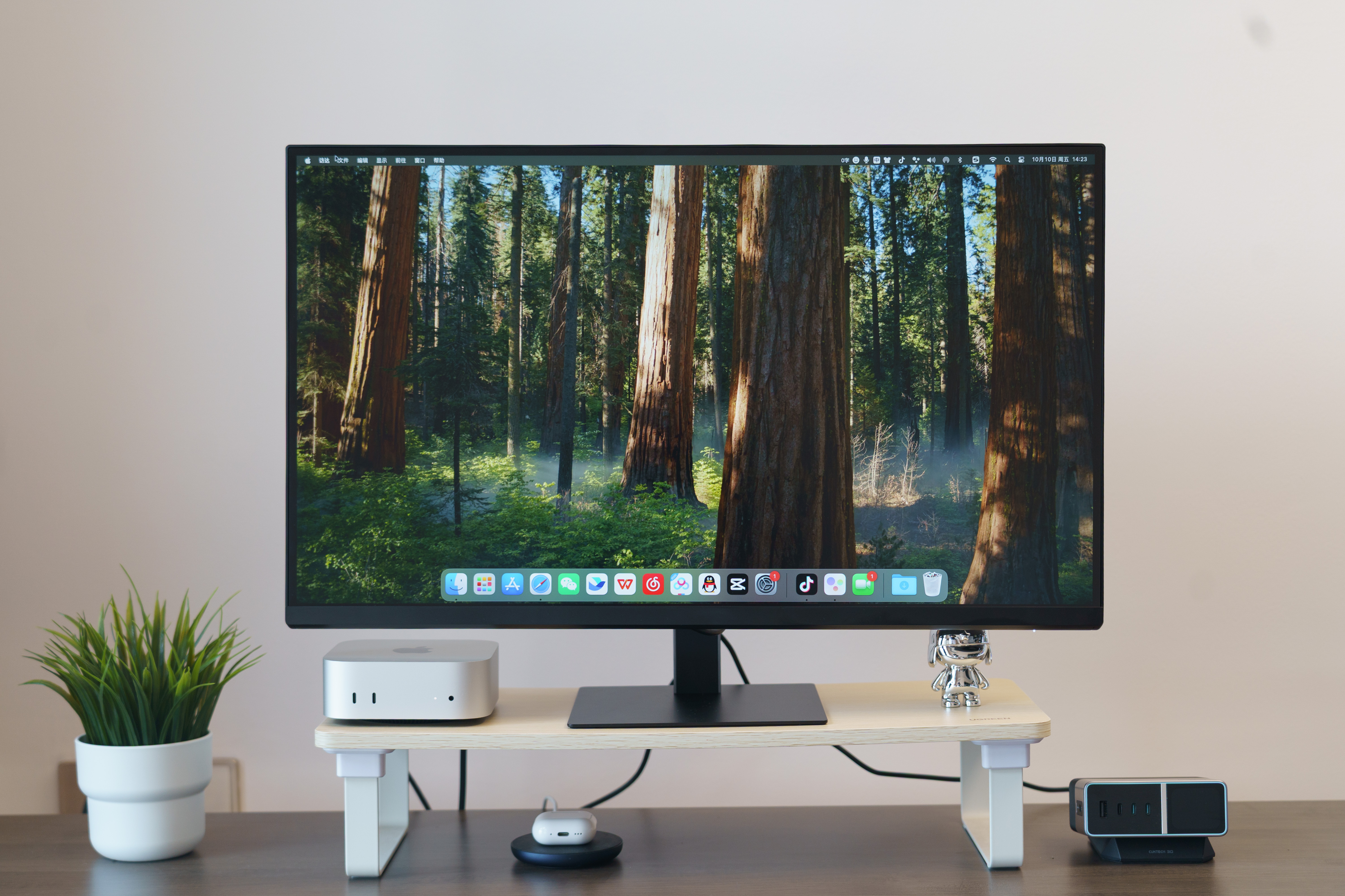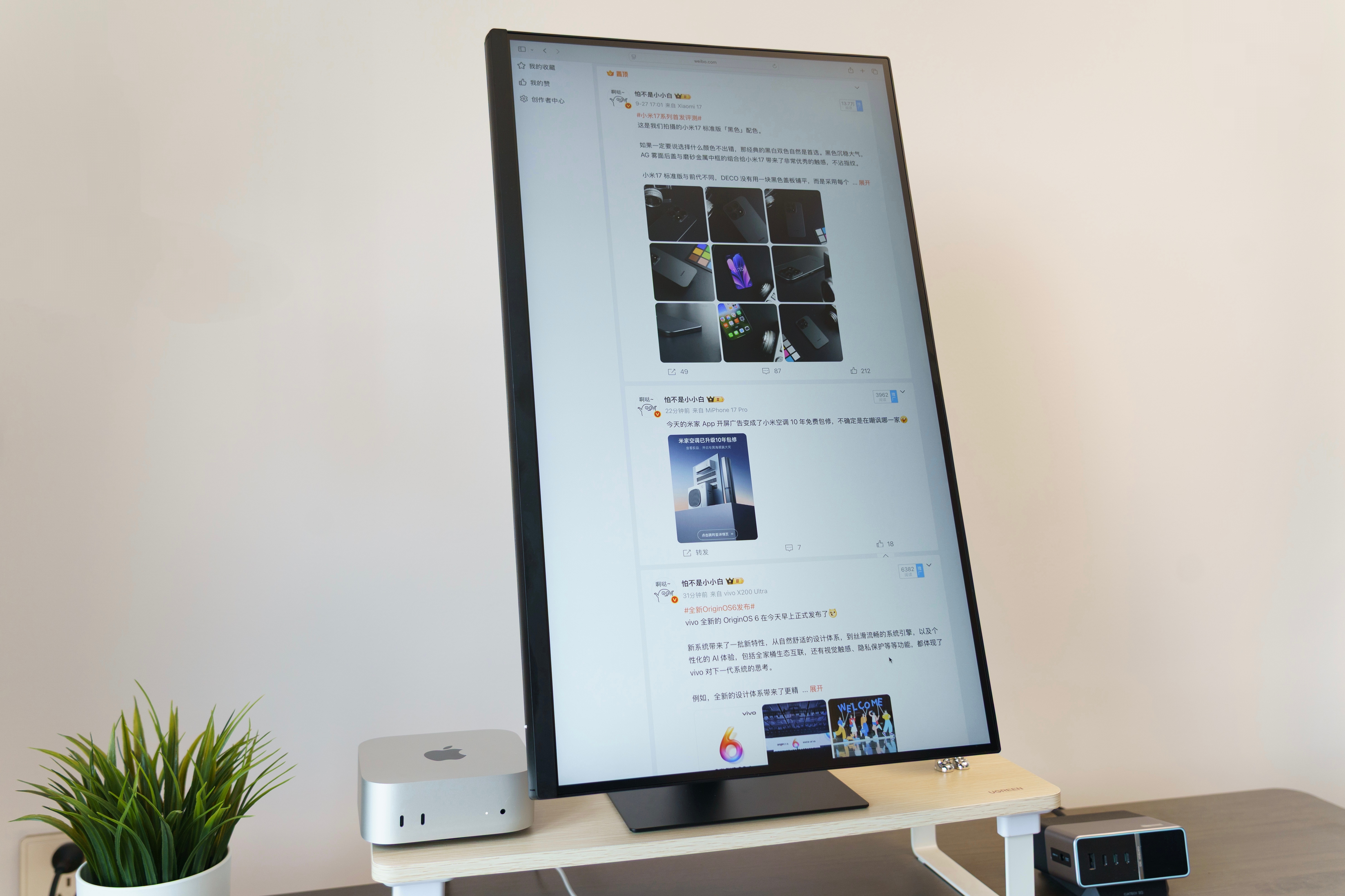 这个产品很适合搭配 Mac 使用,无论是当做 Mac mini 小钢炮的主显示屏,还是与 MacBook 直接 C2C 连接当副屏,都能提供优秀的显示效果,并自动适配校色文件。如果你用 C2C 一线连,后面的所有接口还支持 USB HUB 功能,间接当做拓展坞。