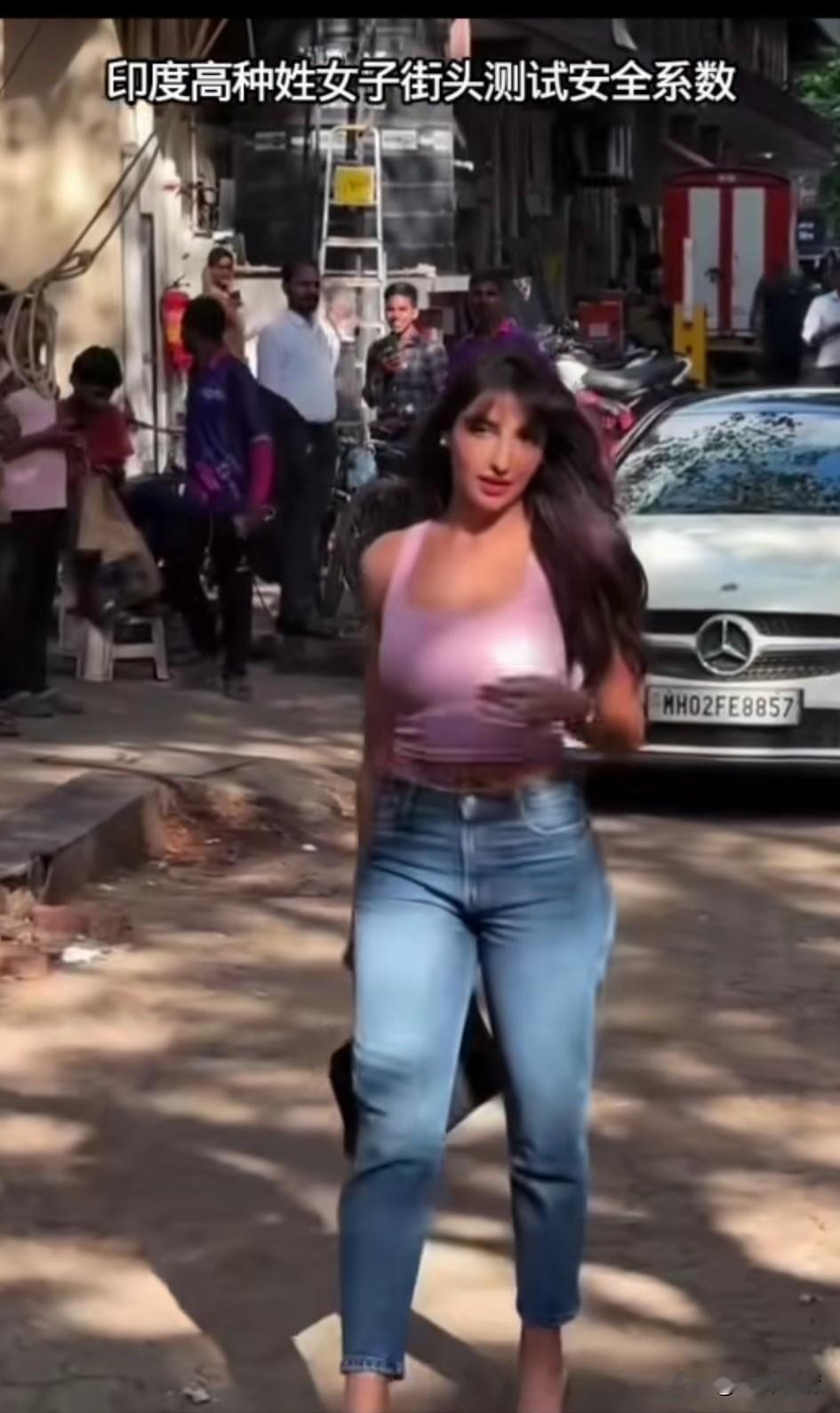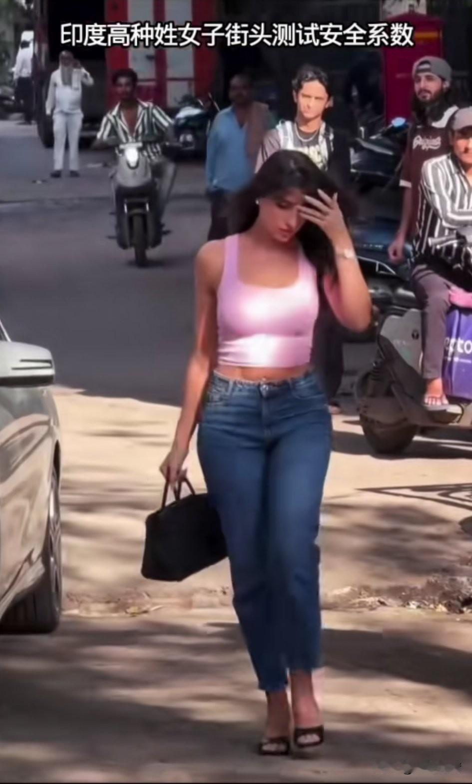 印度高种姓美女不信邪, 非要证明印度很安全, 网友压根不信她的话, 为了证明自己是对的, 就在印度街头测试安全系数, 去之前还请了彪形大汉做保镖, 粉色背心加蓝色牛仔裤, 也算是正常穿搭, 刚一下车就开始撩头发, 这瞬间让周围的印度男人停止了手上的一切,都看了过来, 大家以为是来拍电影的, 后面的印度男人眼睛都直了, 和旁边的男人谈论着女人的身材和颜值,甚至打电话喊了自己的好哥们, 有些自己的老婆就在旁边, 还明目张胆当着高种姓女子看, 看来高种姓和其他国家的女人穿搭一样,只有低种姓的穿着罩袍服饰, 好看是好看了, 不过高种姓也不是很白, 而且小肚上面还有赘肉, 这是有镜头和保镖, 要是晚上一个人在大街上, 恐怕分分钟被抬走, 毕竟印度的女性安全可是有口皆碑的! 大家对于印度高种姓美女非要作秀证明街头安全怎么看? 提到看印度,你就会联想什么呢 印度高种姓 印度人地位 印度女游客 印度低种姓