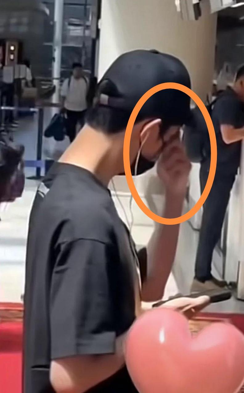 他有个瞬间被抓拍,他在偷偷的用手在擦眼泪,不要以为他是一时的矫情和不够坚强,这绝对不是,他拍戏吊威亚时,不小心他摔下来,让腿受伤流血了,他还在坚强和开心的笑,他这部戏是电视剧一伞烟雨。 他在另一部剧两世欢里面,也是因为拍打戏,不小心让左眼受伤了,眼睛当时都流血了,他都没哭,也没害怕,所以不知道他后来经历了什么?为什么他后来会那么不开心? 如今很多人说他在最后一次在出行的时候被抓拍,他几次突然抬起头来,都是强忍住不让眼泪掉下来,所以他有这么一个瞬间被抓拍了,就是他站在那里等电梯的时候,他用手擦了一下眼泪,哪怕他戴着口罩也难掩他不开心的神情……眼泪只能自己擦 背着风流泪