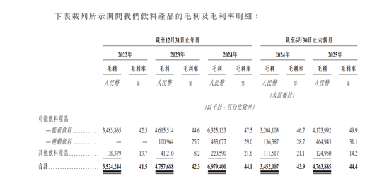 招股材料显示,2025年上半年,公司能量饮料毛利率为49.9%,而运动饮料毛利率为31.1%,其他饮料产品毛利率为14.2%。