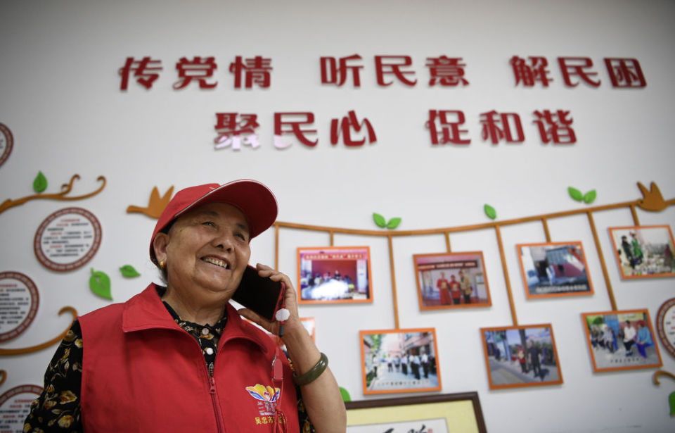 2019年11月29日,在浙江省湖州市织里镇社会治理综合服务中心调解室,“平安大姐”工作室的志愿者调解纠纷。“平安大姐”团队运用中华优秀传统文化中的“调解”思维,依靠亲情、友情、乡情“说和调停”,调解纠纷,化解矛盾。