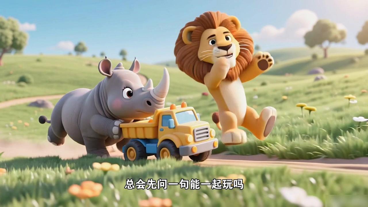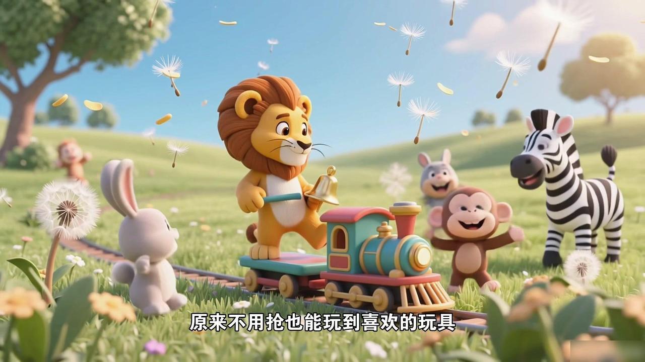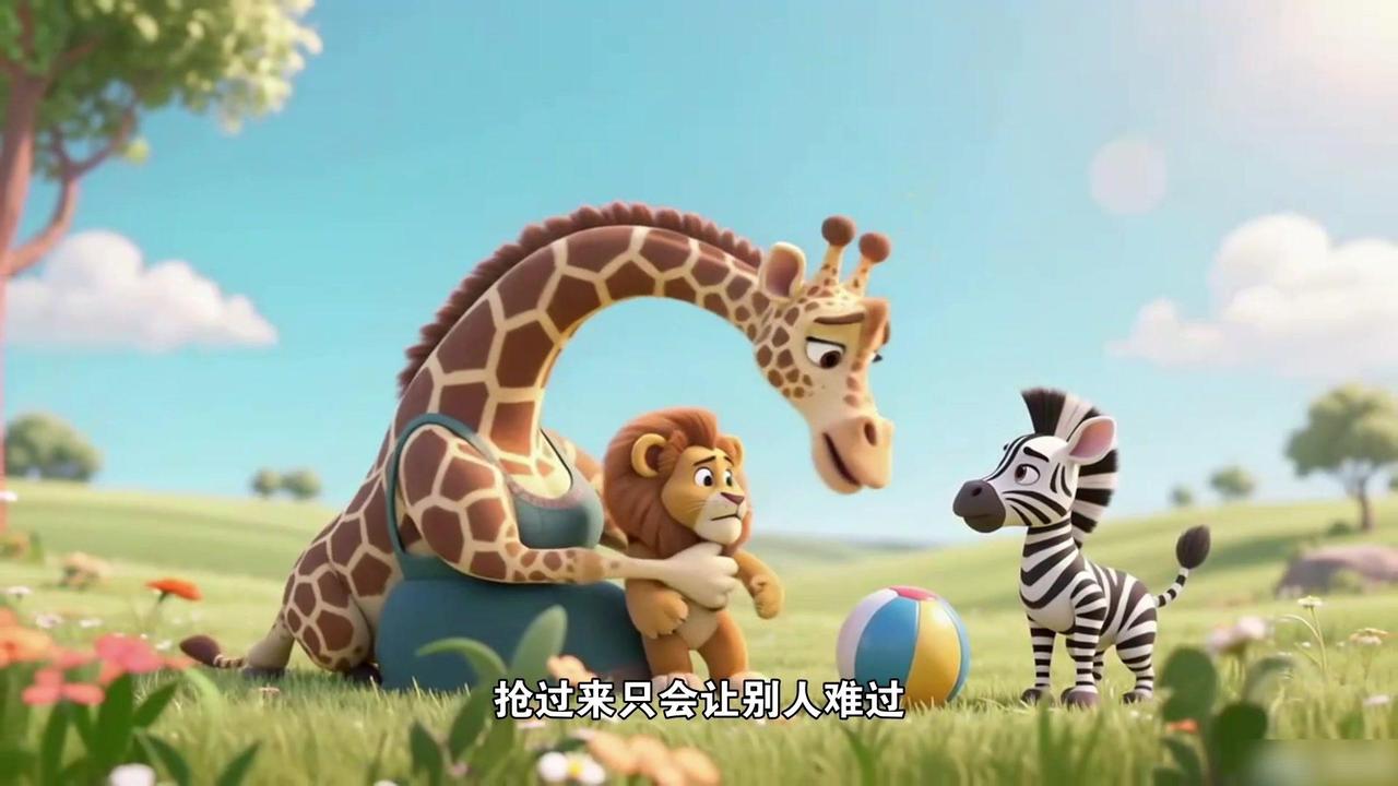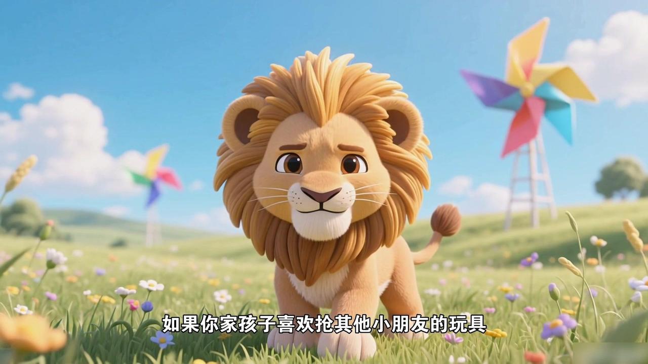 孩子总抢玩具?试试这个故事!🐾小狮子壮壮以前总爱抢别人玩具,小兔的胡萝卜摇铃、小猴的秋千,他一把夺过来就自己玩。渐渐地小动物们见了他就躲,壮壮总是一个人孤零零的。 🦒直到有天长颈鹿阿姨带来个会发光的皮球,大家围着拍呀笑呀,壮壮也想玩,刚要伸手去抢,阿姨拦住他说:“玩具就像甜甜的饼干,抢过来只会让别人难过,换着玩才能尝到更多味道哦。”她教壮壮问:“我能和你一起玩吗?” 💬壮壮红着脸对小斑马说:“我...我能一起玩吗?”小斑马笑着答应,他们比赛拍球,你一下我一下,皮球闪着光,比自己玩有意思多了。后来壮壮拿出自己的小火车,小兔立刻递过胡萝卜摇铃:“我们换着玩吧!” ✨原来不用抢,也能玩到喜欢的玩具,还能交到好朋友。现在他见了小伙伴,总会先问一句“能一起玩吗?”