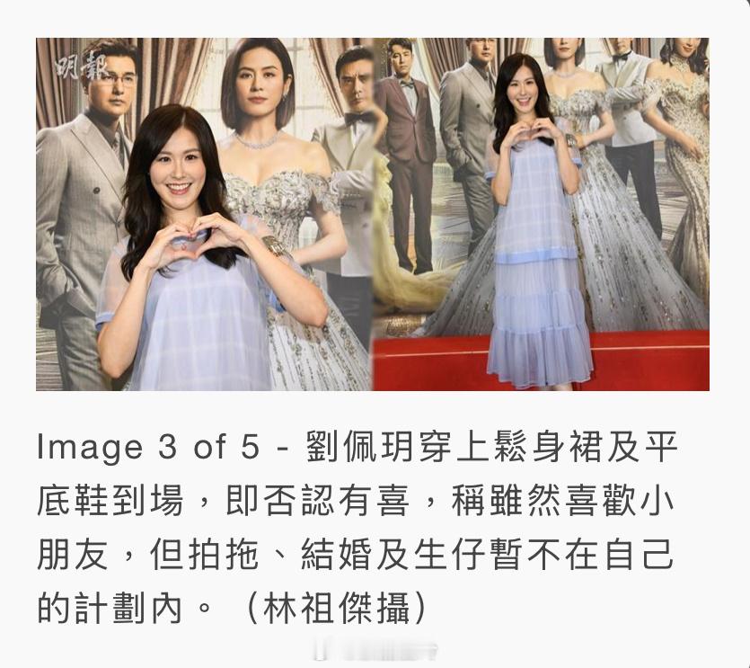 劉佩玥穿上鬆身裙及平底鞋到場,被監製鍾澍佳笑指有喜,劉佩玥即否認,稱雖然喜歡小朋友,但拍拖、結婚及生仔暫不在自己的計劃內,正循序漸進,對於早前被拍到與緋聞男友周志文行街,她則道:「一齊行街沒特別,一向都會做,就算之前話影到我去他屋企,都好平常!」另外,Moon表示找周志文和周志康惡補歌藝,稍後打算出歌,但沒想過爭新人獎。問她是否《中年好聲音4》參賽藝人當中?她即支吾以對,只表示到時大家多多支持節目,自己都很期待節目。