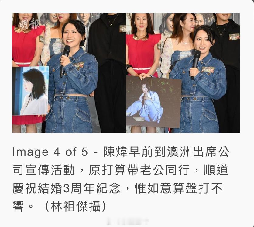 陳煒早前到澳洲出席公司宣傳活動,原打算帶老公同行,順道慶祝結婚3周年紀念,惟如意算盤打不響:「因為行程變得太緊密沒有時間,最終取消老公機票,之後又要為《璀璨之城》開工,老公又要返工,可能今年放過他。」問老公可有追看她劇中演出,她指老公有看,但只讚林景程做得好:「老公還表示想客串演醫生,看下次可有機會,我不介意與他合作,最緊要不要NG阻收工。」