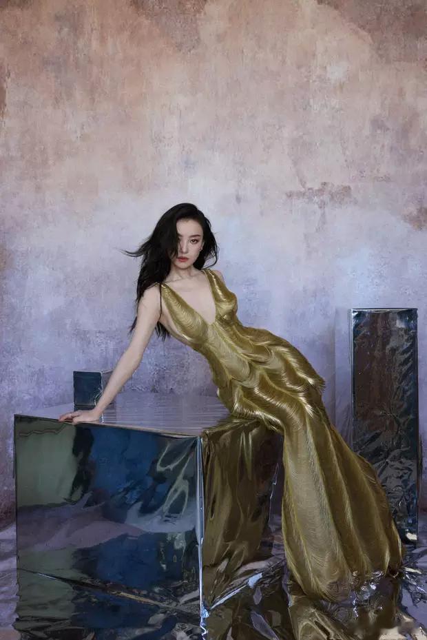 分享娱乐[超话]分享娱乐 倪妮穿金色深V长裙美艳魅惑 锁骨诱人曲线曼妙