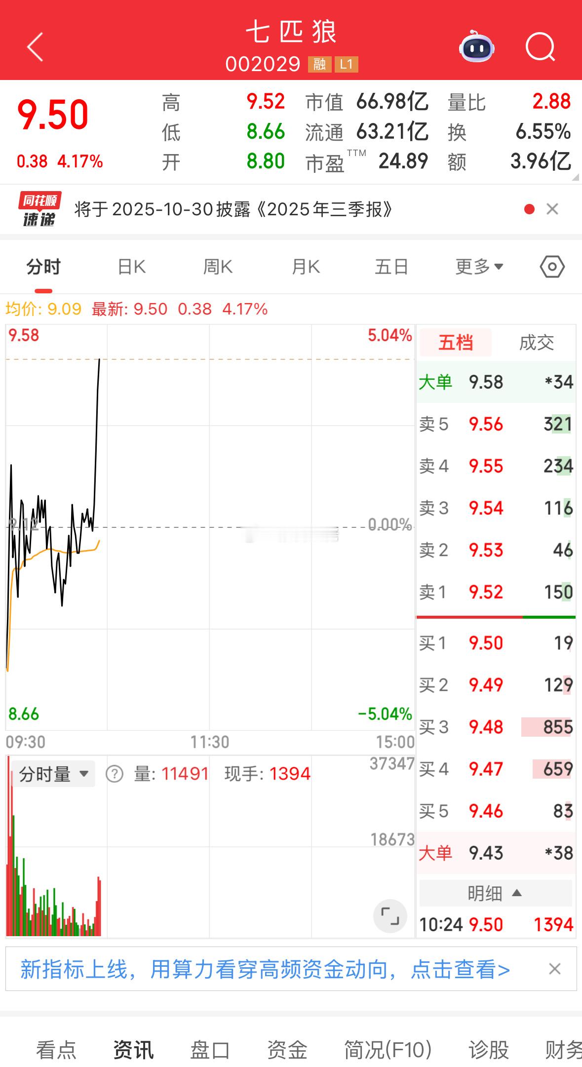 漂亮,盘前提示的 七匹狼发力,恭喜跟上的朋友,点赞178支持大佬!