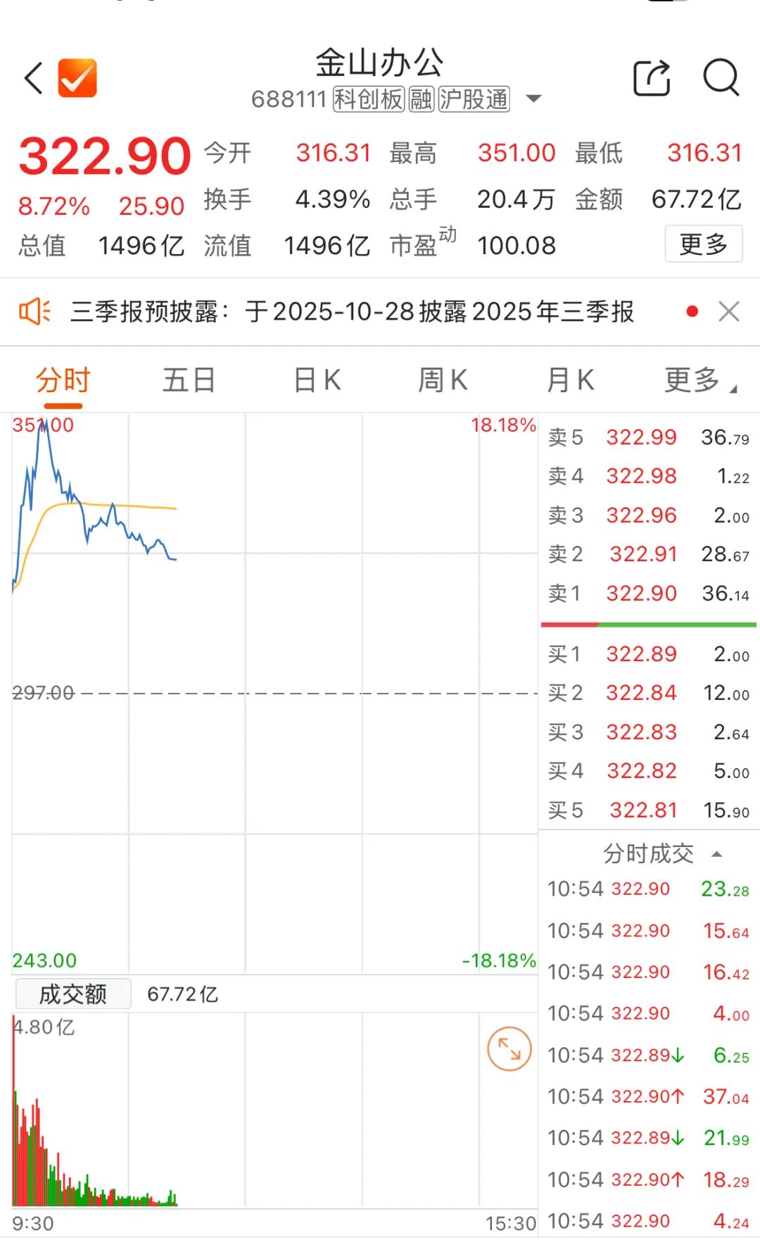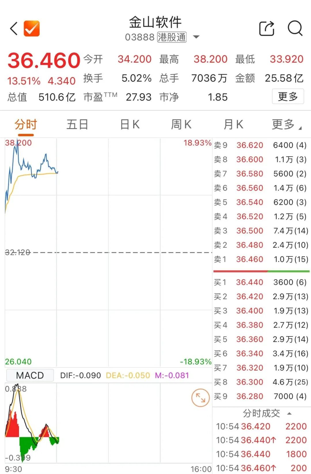 10月13日早盘,国产软件概念表现活跃。截至发稿,A股金山办公涨8.72%,报322.9元/股,今日盘初,金山办公一度涨18.18%。港股金山软件涨13.51%,报36.46港元/股,盘初一度涨近19%。