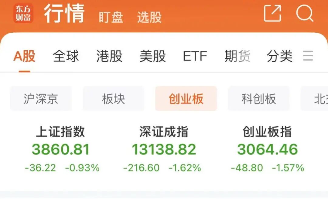 A股三大股指今日低开后拉升。截至发稿,上证指数报3860.81点,跌0.93%;深证成指报13138.82点,跌1.62%;创业板指报3064.46点,跌1.57%。