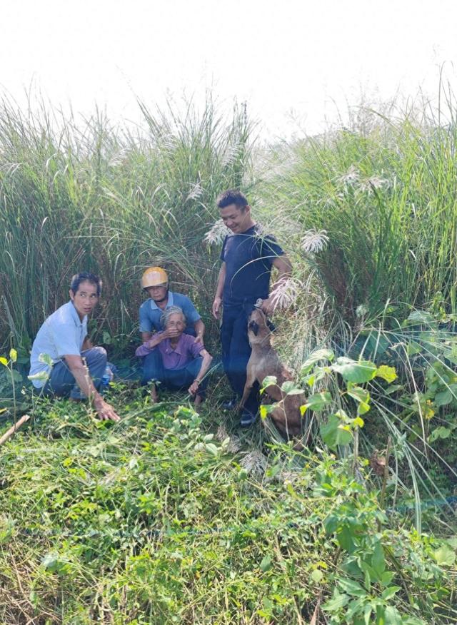 14时48分,当搜索至河边芦苇丛时,“小米”突然驻足并发出兴奋示警。训导员立即示意搜救人员上前排查,最终在茂密的芦苇丛中发现了失联的赖阿婆。经初步检查,老人身体状况良好,民警随即小心翼翼地将其护送回家人身边。