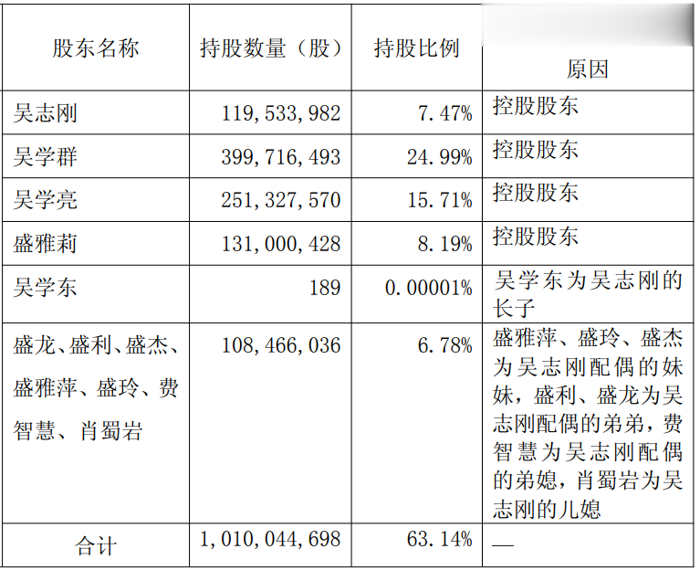 因家庭资产规划需要,吴志刚将通过大宗交易方式向其配偶盛雅莉转让股份合计不超过31,994,383股,占公司股份总数的2%,本次转让系控股股东及实际控制人之间的内部转让,不涉及向市场减持。吴学东计划通过集中竞价方式减持股份合计不超过189股,占公司股份总数的0.00001%。本次内部转让及减持自计划公告之日起15个交易日后方可实施。