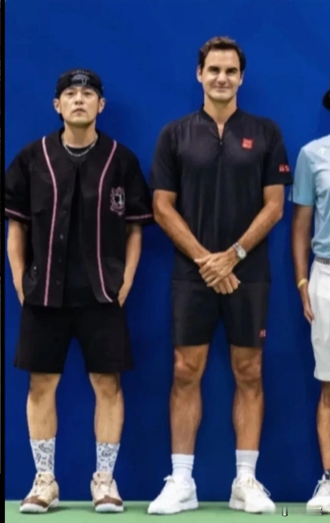 周杰伦终于在上海劳力士大师赛跟自己的偶像费德勒合影了! 站在偶像旁边的周董,有点拘谨,又有点激动。他双手插兜,身形不是很直,背有点驼,腿也有点弯,脚上的卡通袜很抢眼。原本站在c位的他,静悄悄的走到了最左侧,与费德勒挨边。看来他就是妥妥的迷弟,对网球偶像是真爱啊!周董酷爱网球,不仅自己喜欢打网球,还经常去各种大师赛观摩。这次与他同框的还有李娜,张之臻! 不过看这张照片的身高,感觉周董也就一米七左右,因为他比1米72的李娜稍微矮一点,可能因为病痛驼背让他的身高缩水了!