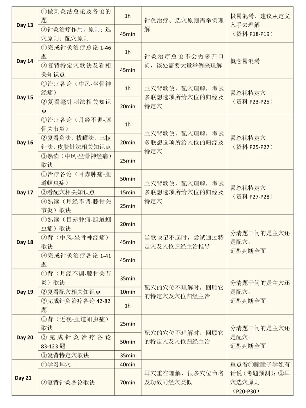 面面俱到‼️21天针灸保命复习计划表🗒️