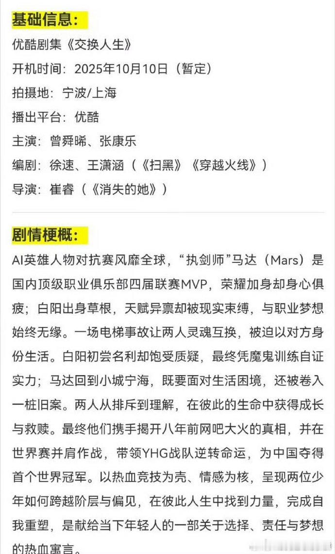曾舜晞、张康乐《交换人生》开通官微,要开机了