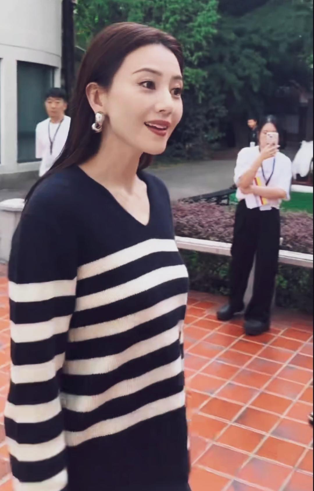 45岁董洁在法国巴黎旅游,她的打扮好时尚,身材苗条,脸部的皮肤太好了,看起来好年