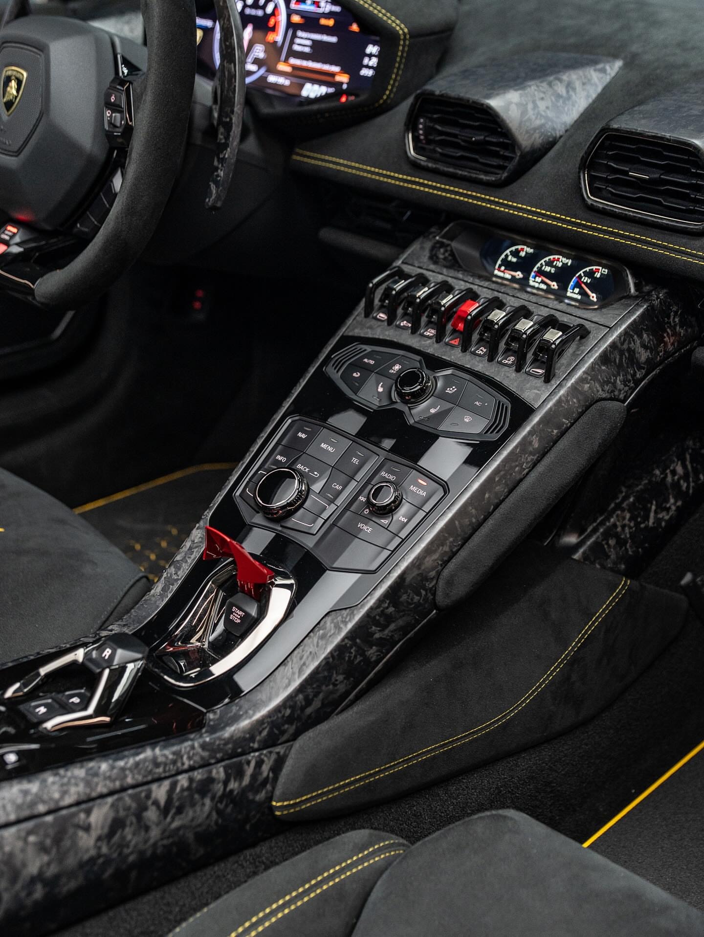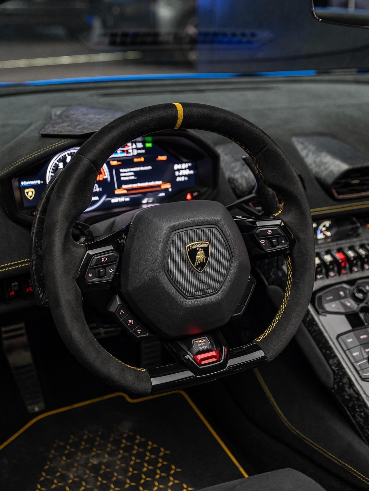 2019年兰博基尼Huracán Performante搭载一台自吸式5.2升V10发动机,输出功率为630-640马力,扭矩为443磅·英尺。它采用多点喷射和直喷分层喷射相结合的技术,配备全轮驱动系统,并使用了轻量化材料如锻造碳纤维。