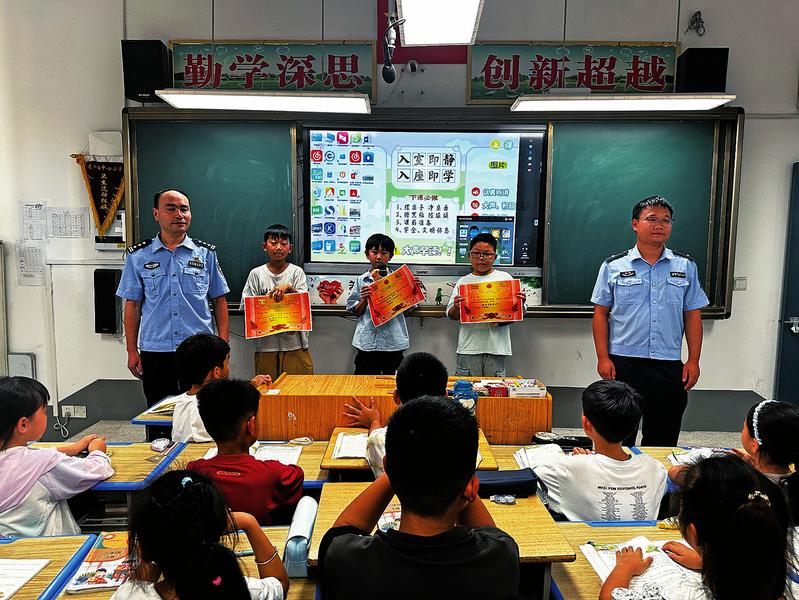 本报讯10月10日下午,一场特别的表彰仪式在郎溪县建平镇中心小学三(1)班教室举行。郎溪县公安局郎川派出所民警专程来到学校,为潘震、吴正宇、蔡晨哲三名同学举行表彰仪式,嘉奖他们拾金不昧的优良品德。民警不仅为三位同学颁发了荣誉奖状,还送上了象征荣誉与鼓励的“小熊警官”玩偶。