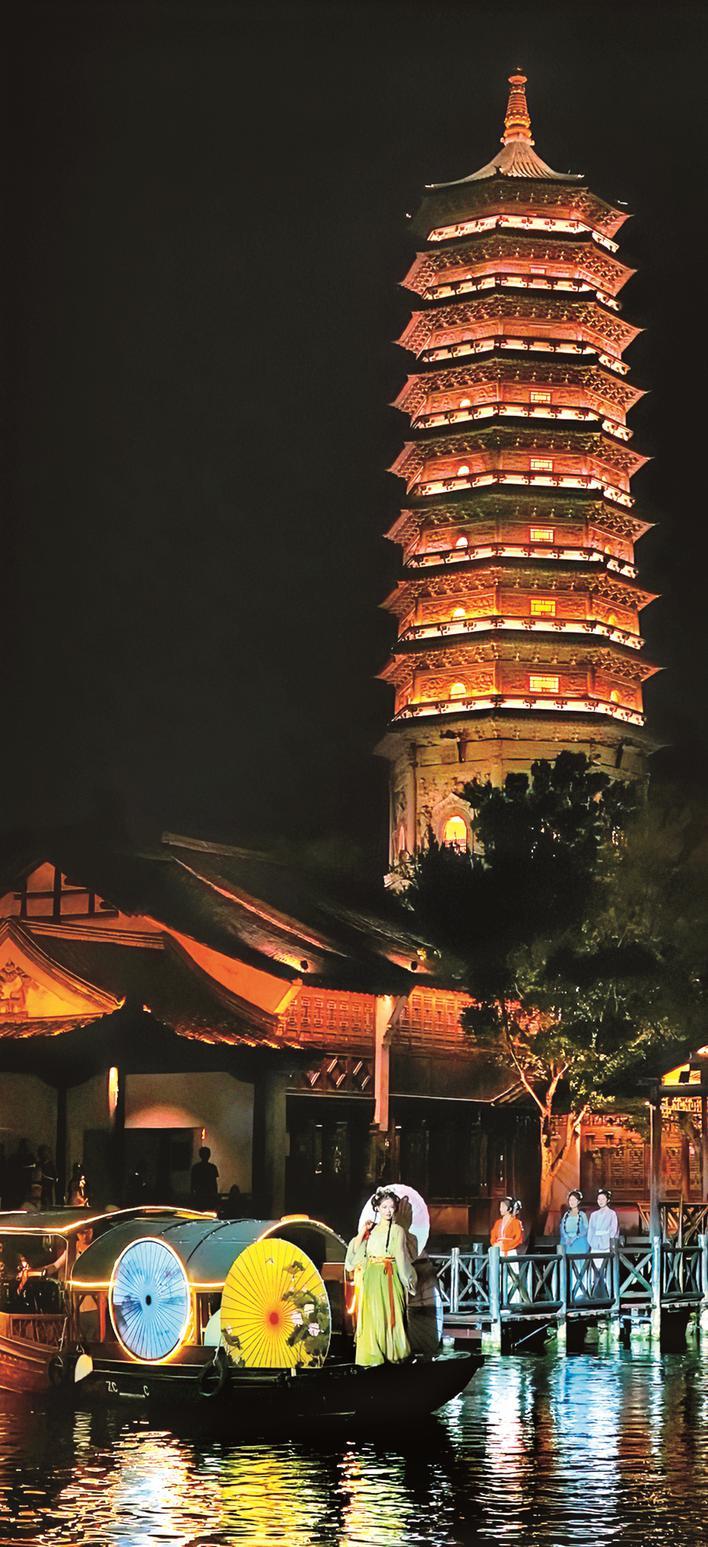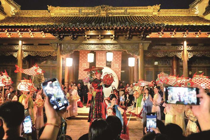 10月7日晚,演员们在濮院时尚古镇内表演。