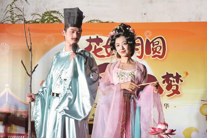 9月25日下午,嘉兴市区子城遗址公园内,演员们身穿汉服表演《梦回大宋之国风巡演》。