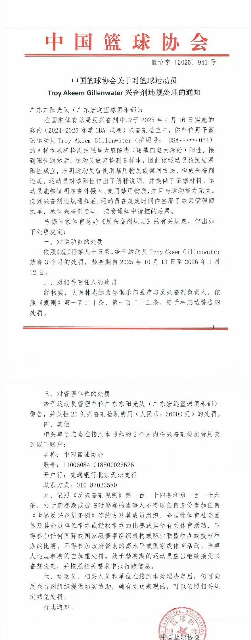 匪夷所思,吉伦沃特只禁赛三个月!篮协罚足三杯酒,恕我直言,对吉伦沃特处罚力度不够,辽宁两个小将冲突事件被禁赛三年,而吉伦沃特触碰红线底线仅三个月,其中两个月没有比赛,梅奥当年曾被NBA禁赛两年,NBA奥本山宫殿事件球员被禁赛30场,而辽宁小将竟禁赛三年,处理的标准需要透明公示化,球迷很好奇究竟为什么。